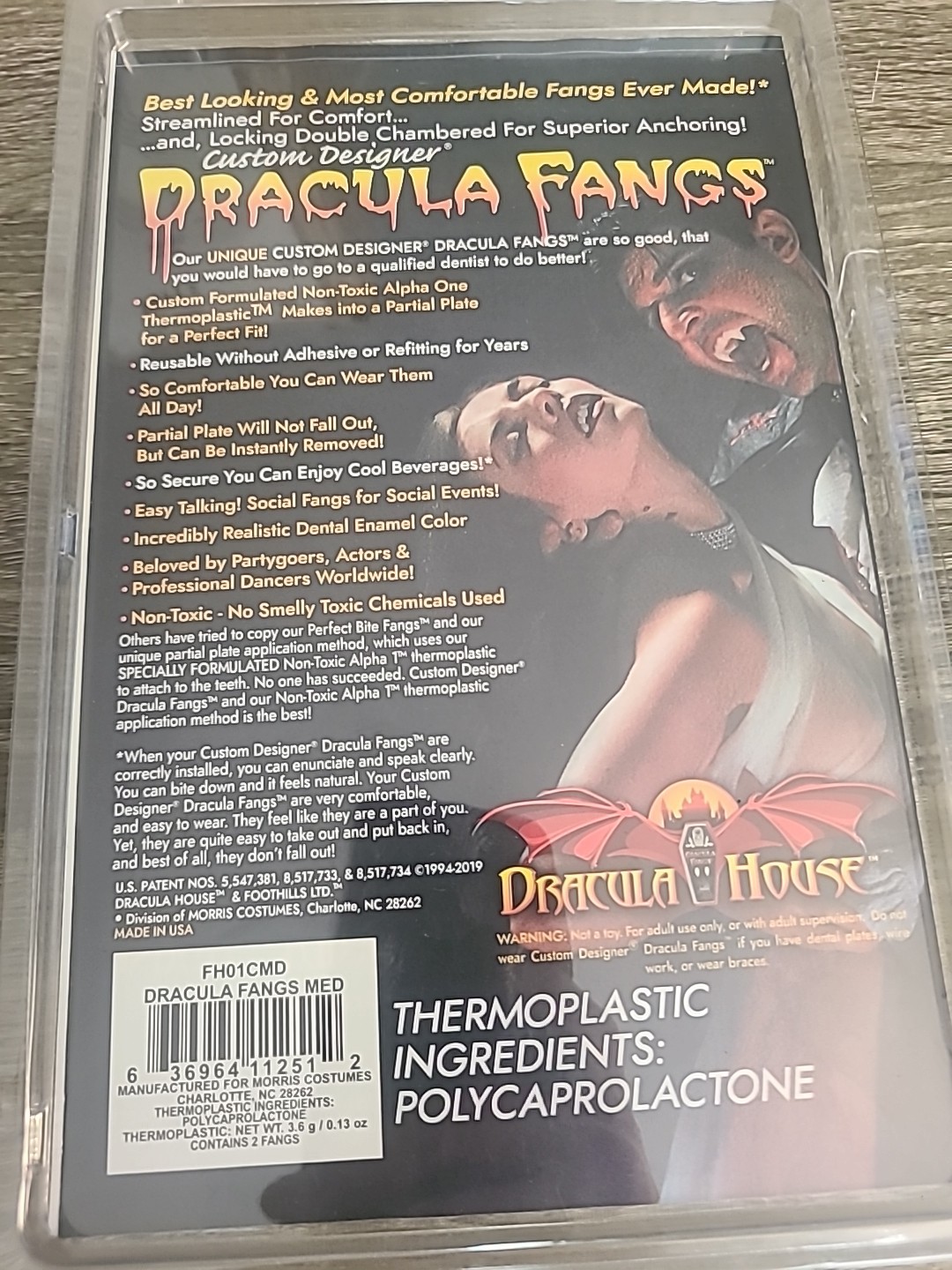 Custom Designer Dracula Fangs Teeth W/ Non-Toxic Alpha One Thermoplastic - NEW