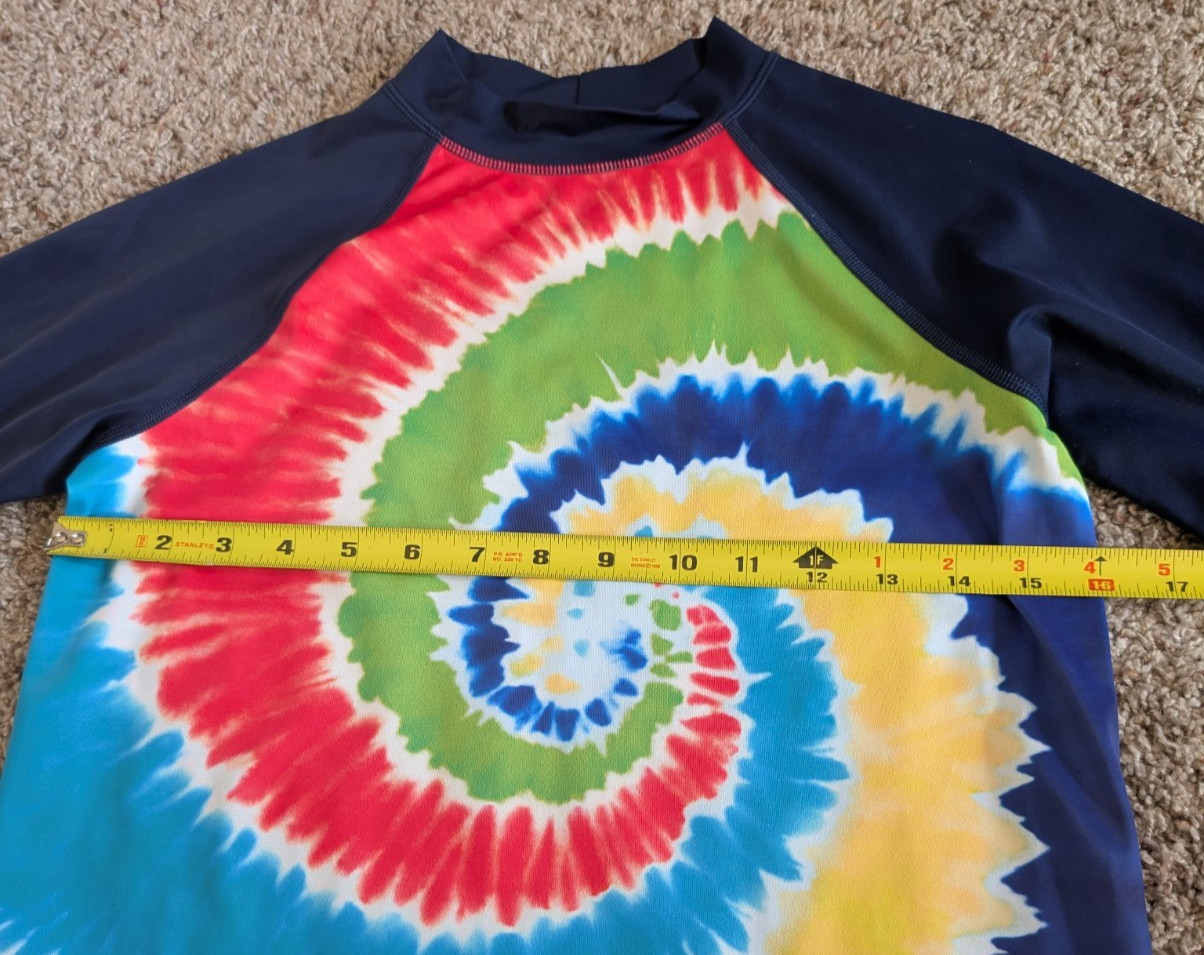 как выглядит Lands End M 10-12 Navy Blue Tie Die Rash Guard Swim Shirt фото