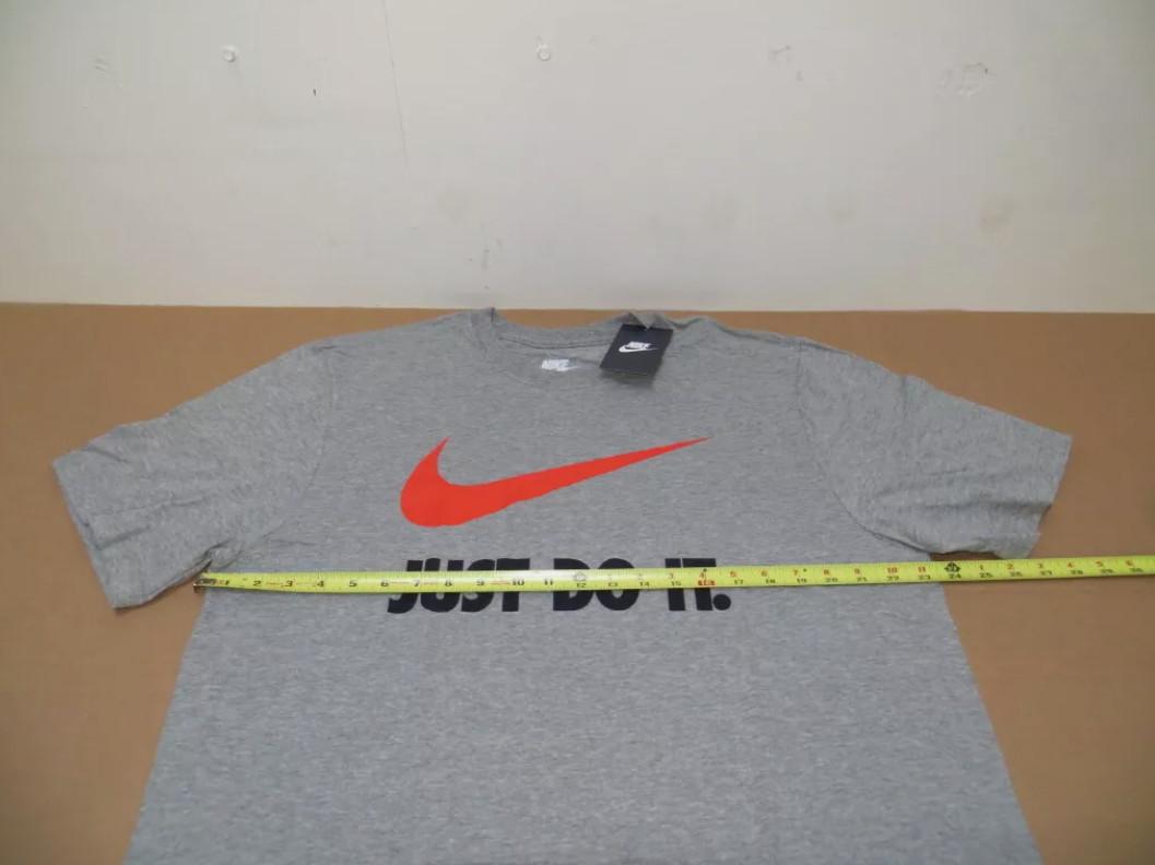 NIKE Men's JUST DO IT Short Sleeve Crew Collar Gray Orange Swoosh T-Shirt New
