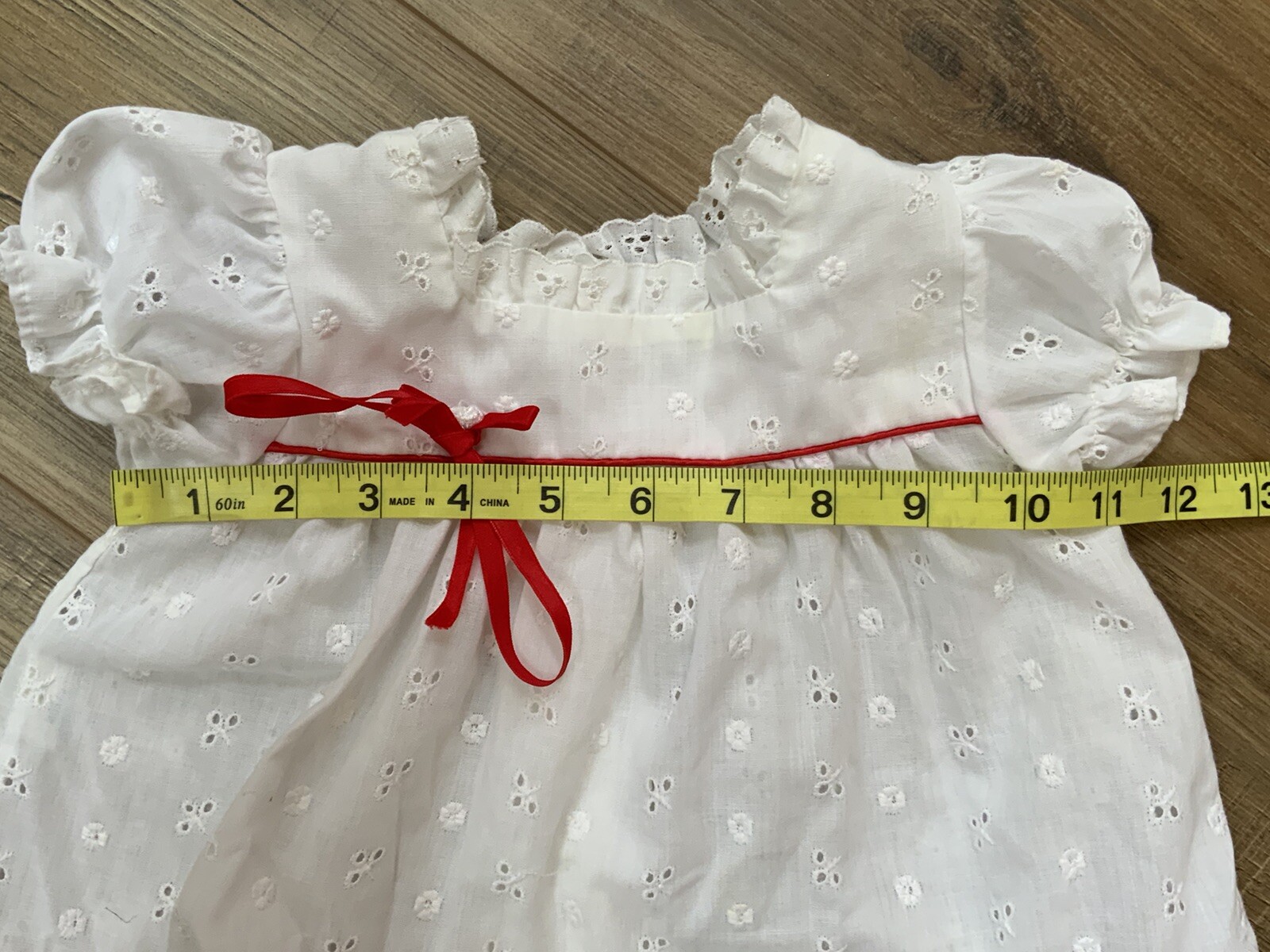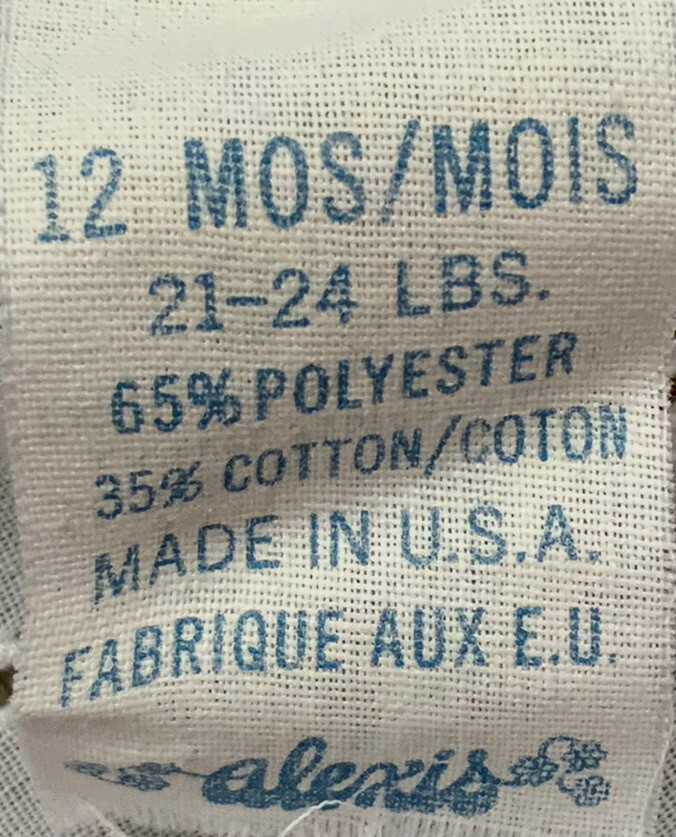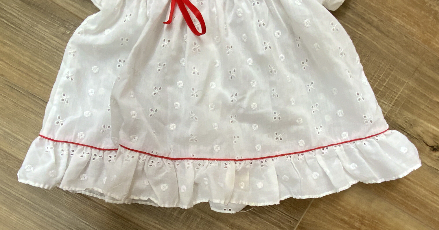 VINTAGE ALEXIS BABY WHITE DRESS SIZE 12 MONTHS MADE IN USA PERFORATED