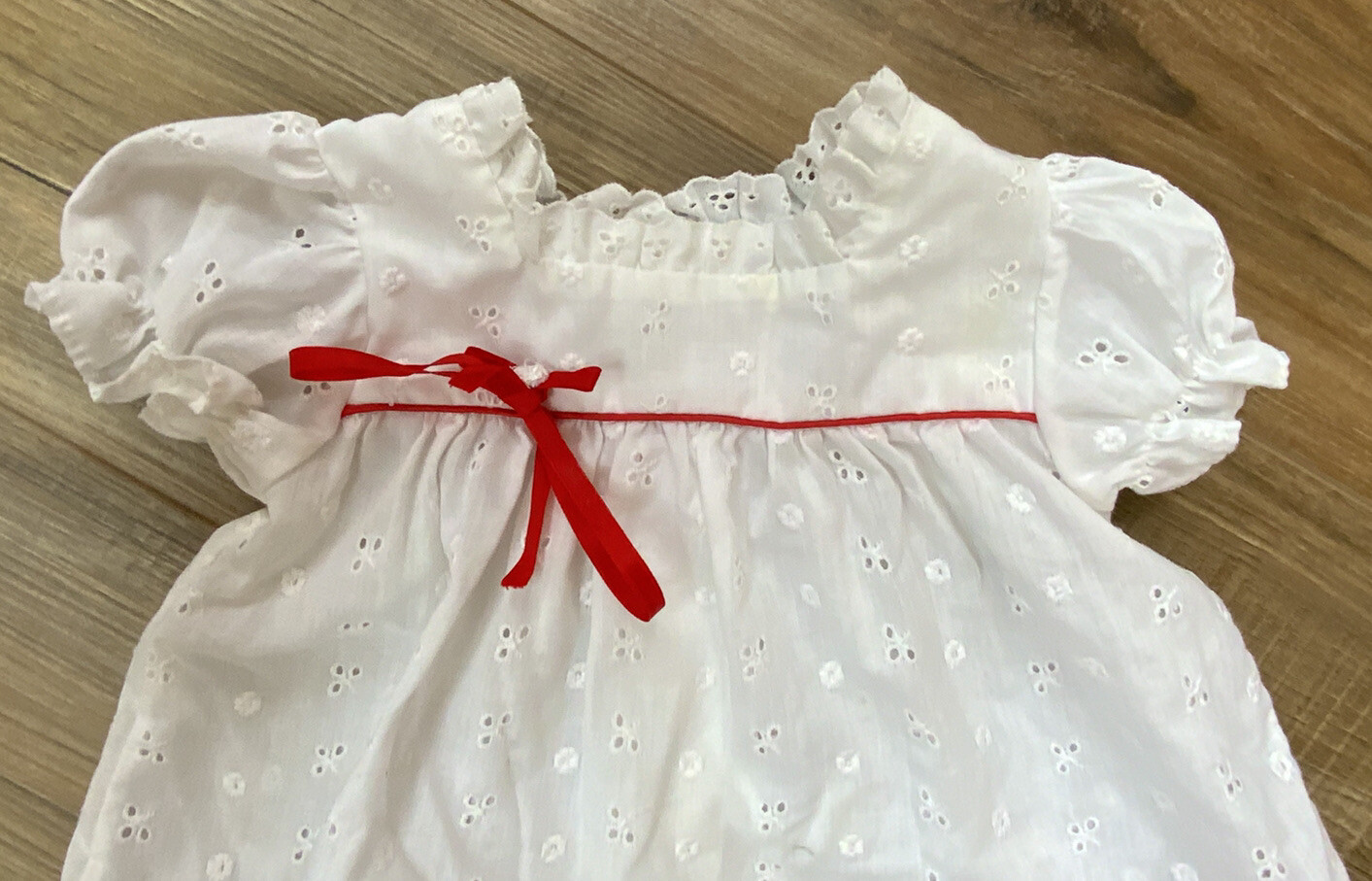 как выглядит VINTAGE ALEXIS BABY WHITE DRESS SIZE 12 MONTHS MADE IN USA PERFORATED фото