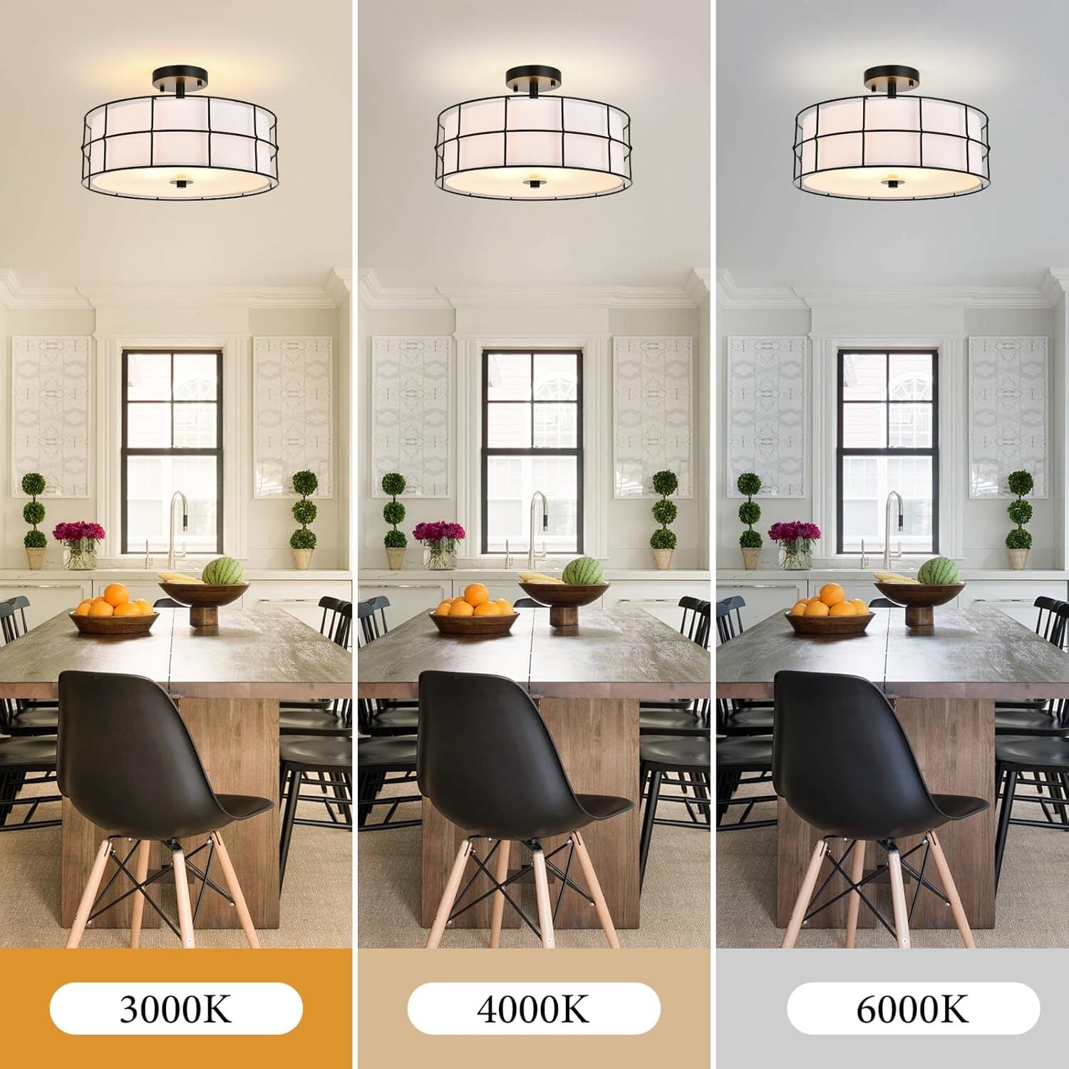 16 Semi Flush Mount Ceiling Light Fixture, 3-Light Black Metal Mesh Drum Ceilin