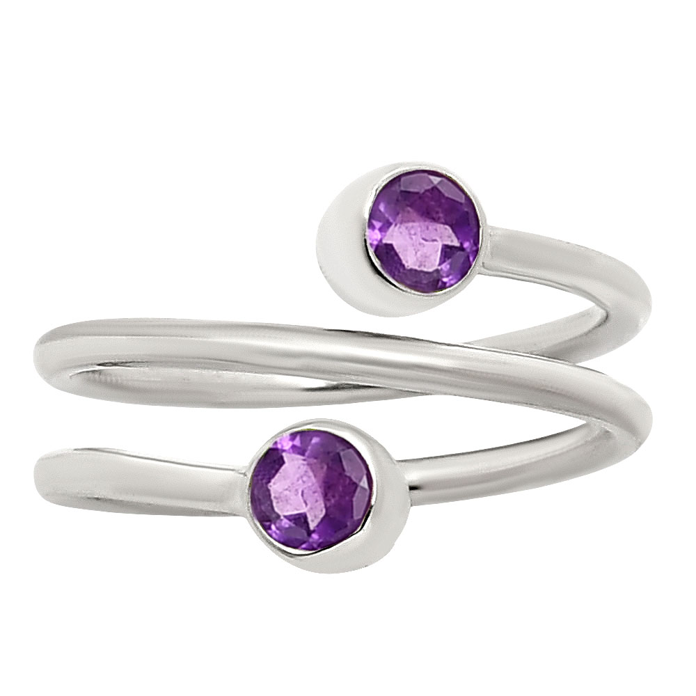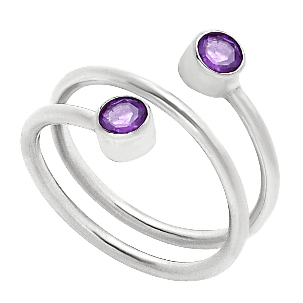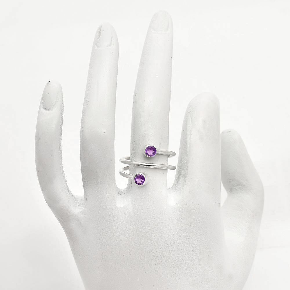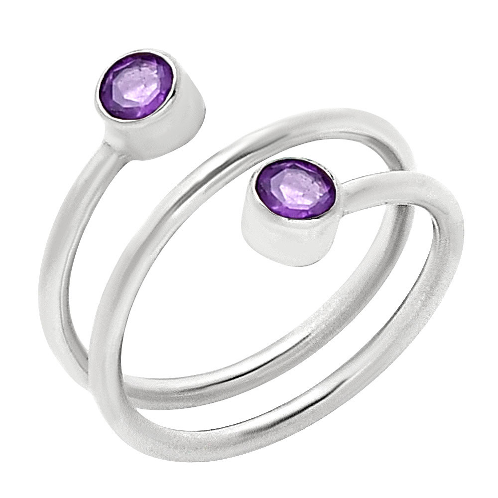 Adjustable Double Natural Gemstone Ring 925 Sterling Silver Handmade DGR1145