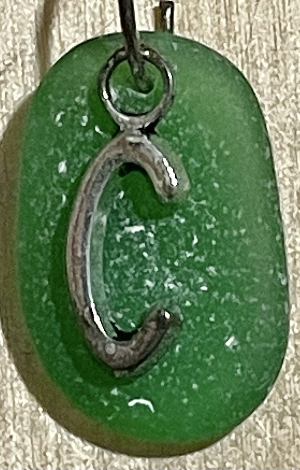 как выглядит GENUINE SURF TUMBLED GREEN SEA GLASS PENDANT/NECKLACE WITH THE INITIAL C фото