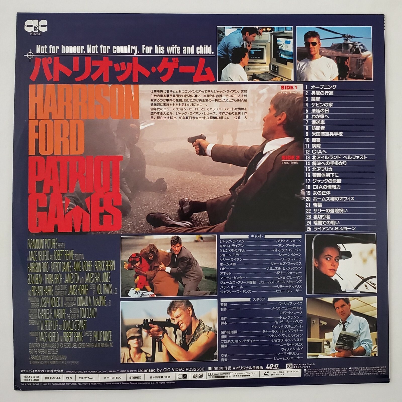 Patriot Games Japanese Imported Laserdisc w/OBI Harrison Ford Tom Clancy Japan