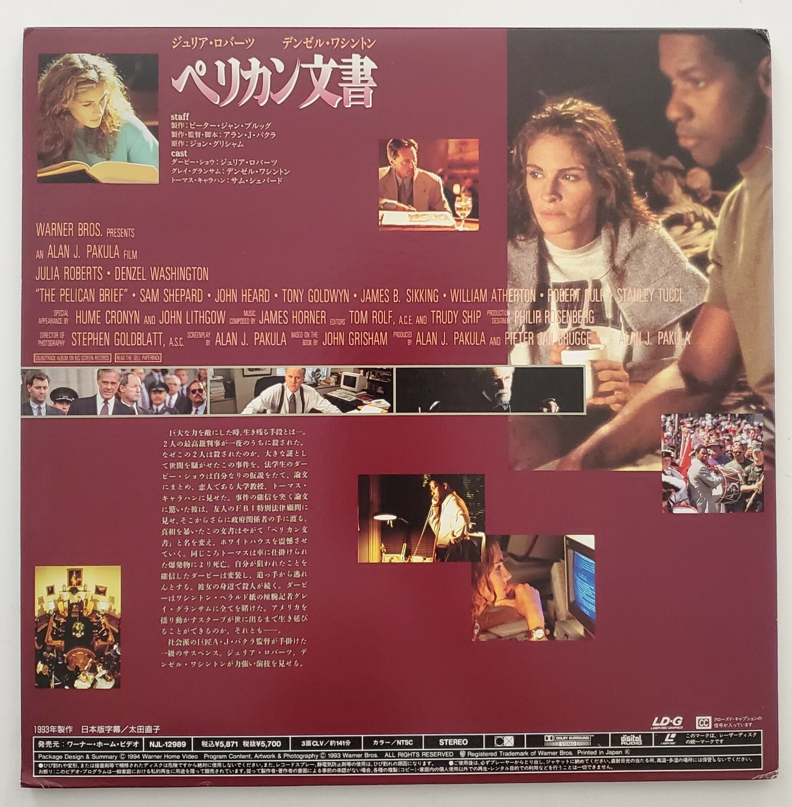Pelican Brief Japanese Imported Laserdisc Julia Roberts Denzel Washington Japan