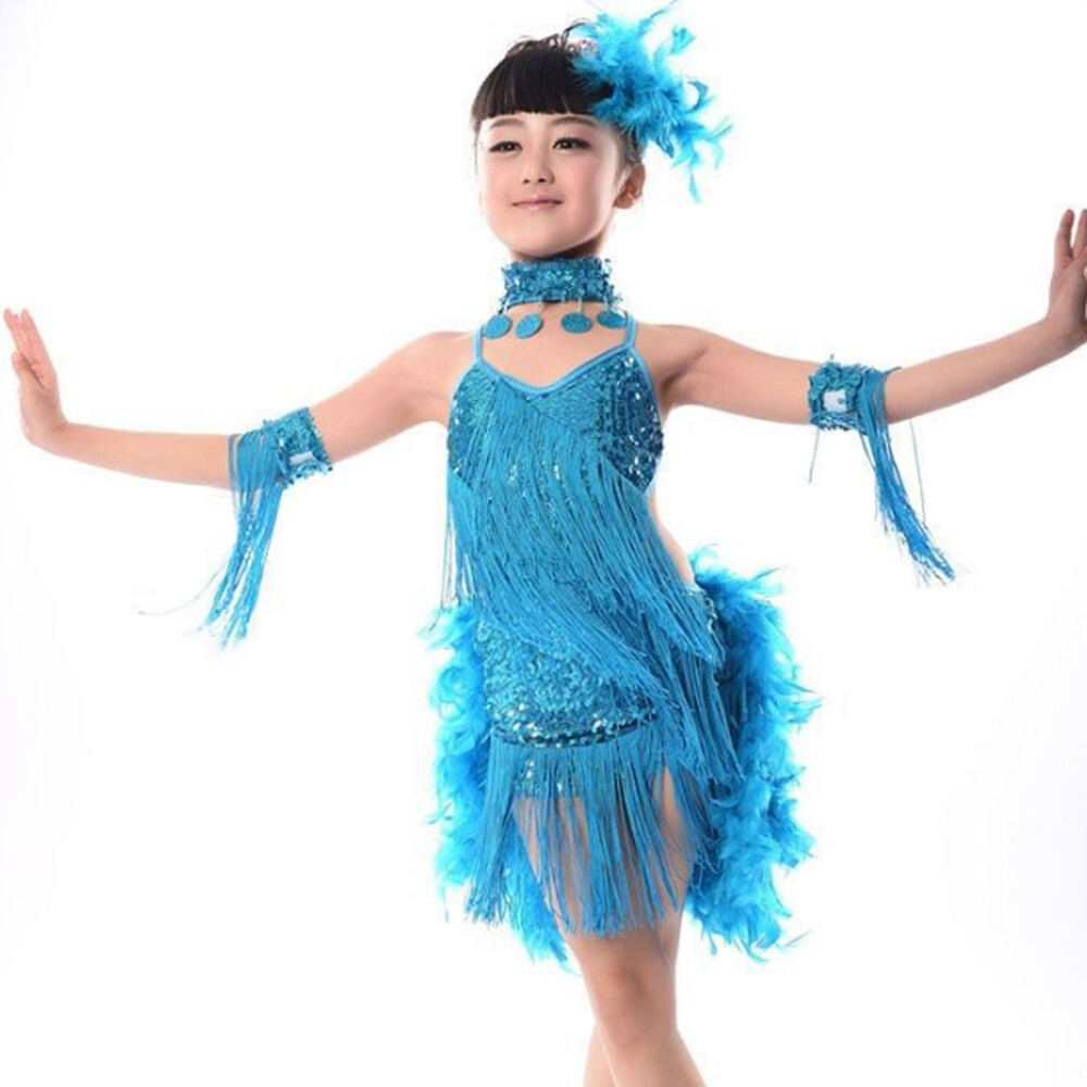 Children Dress Latin Daning Dress for Girls Kids Ballroom Dance Costumes US