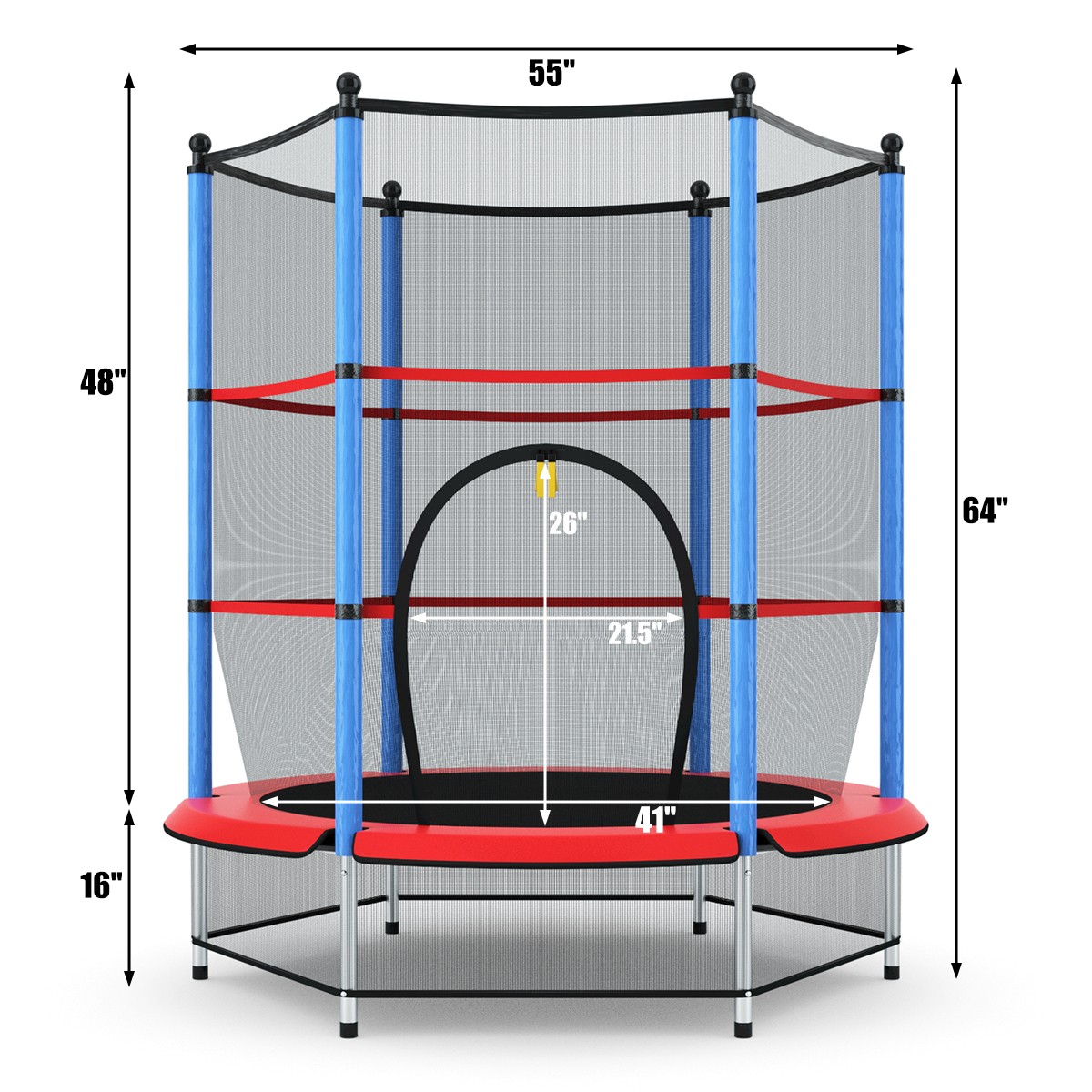 Youth Jumping Round Trampoline 55 Exercise W/ Safety Pad Enclosure Combo Kids