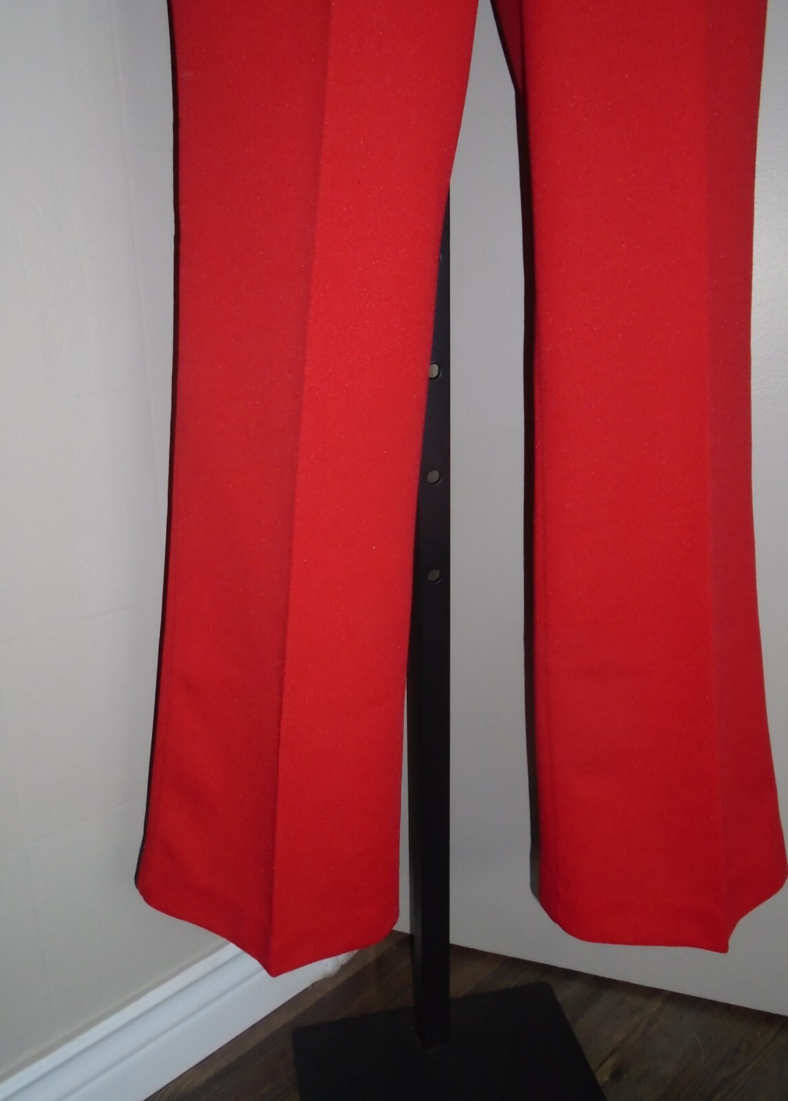Ladies VTG 1970s Red Lightly Crimped Poly Wide Leg Pull On Dress Pants Sz M NOS