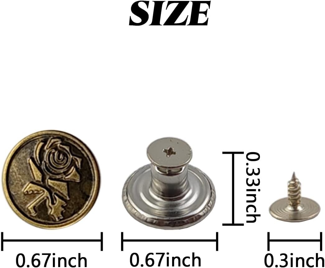 100PCS 17mm Jeans Buttons Replacement with Screwdriver, Jean Buttons for