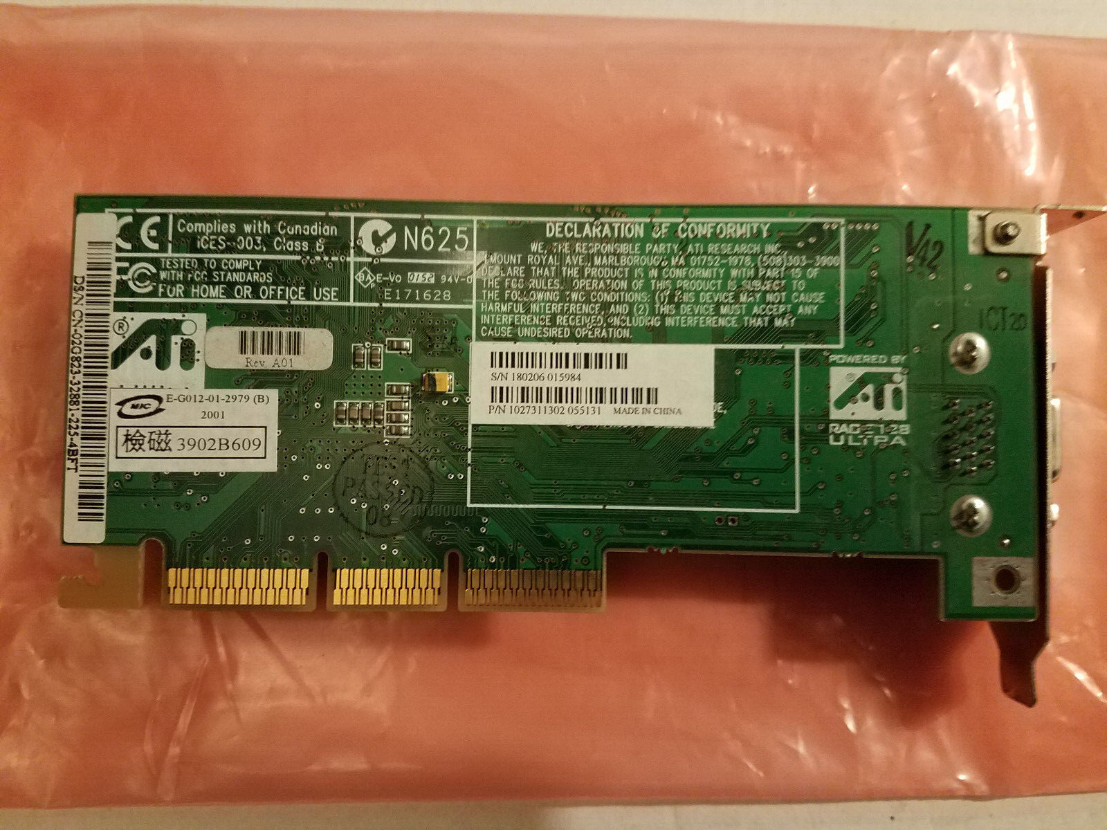 как выглядит ATI 109-73100-02 RAGE 128 PRO ULTRA 4x AGP Video Card Low Profile фото
