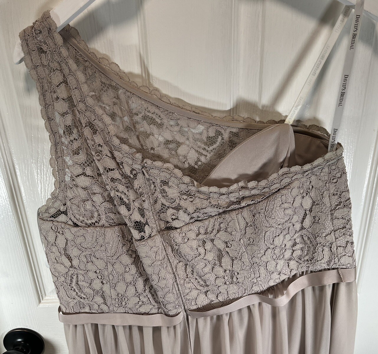 как выглядит Davids Bridal Biscotti One Shoulder Lace F15711 Dress Sz 18 Zipper Back фото