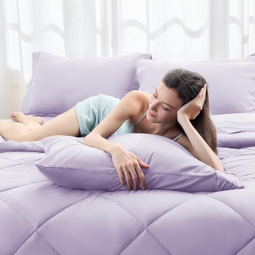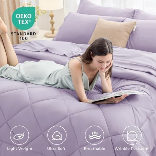 Purple Comforter Set - 5-Piece All Season Bed in a Bag Ultra Twin Light Purple