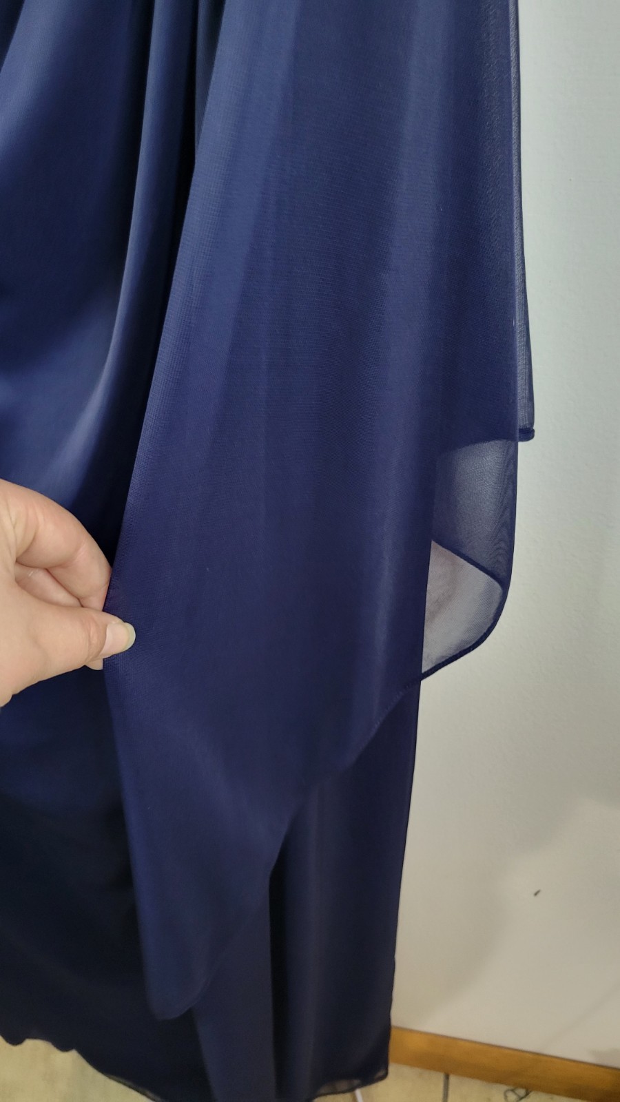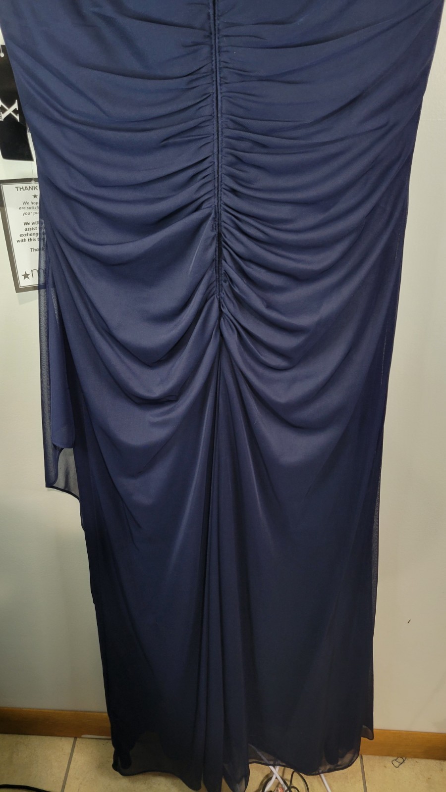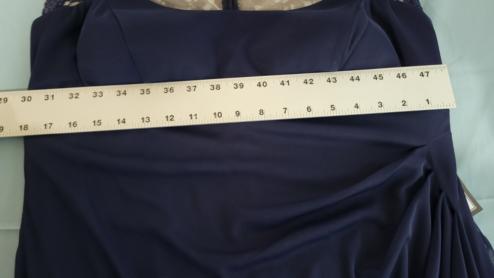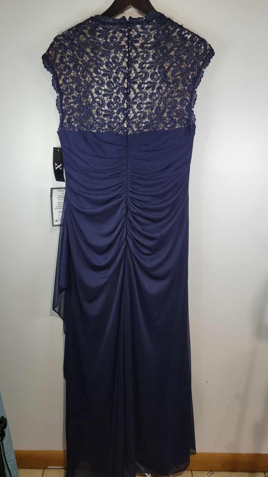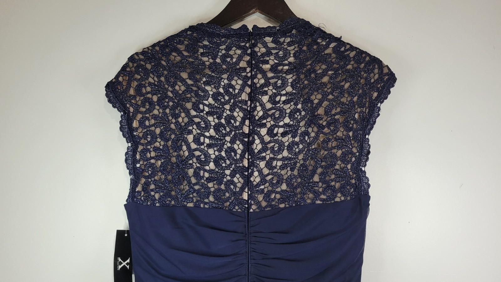 как выглядит X by Xscape Womens 18 Formal Navy Blue Long Dress NWT Lace. Cascade Ruffle, Zip фото