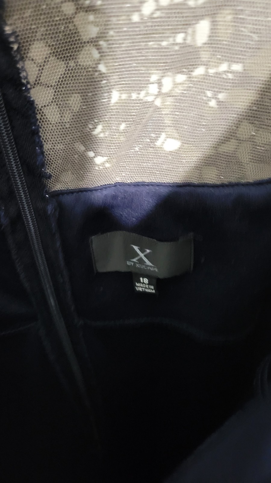 X by Xscape Women's 18 Formal Navy Blue Long Dress NWT Lace. Cascade Ruffle, Zip