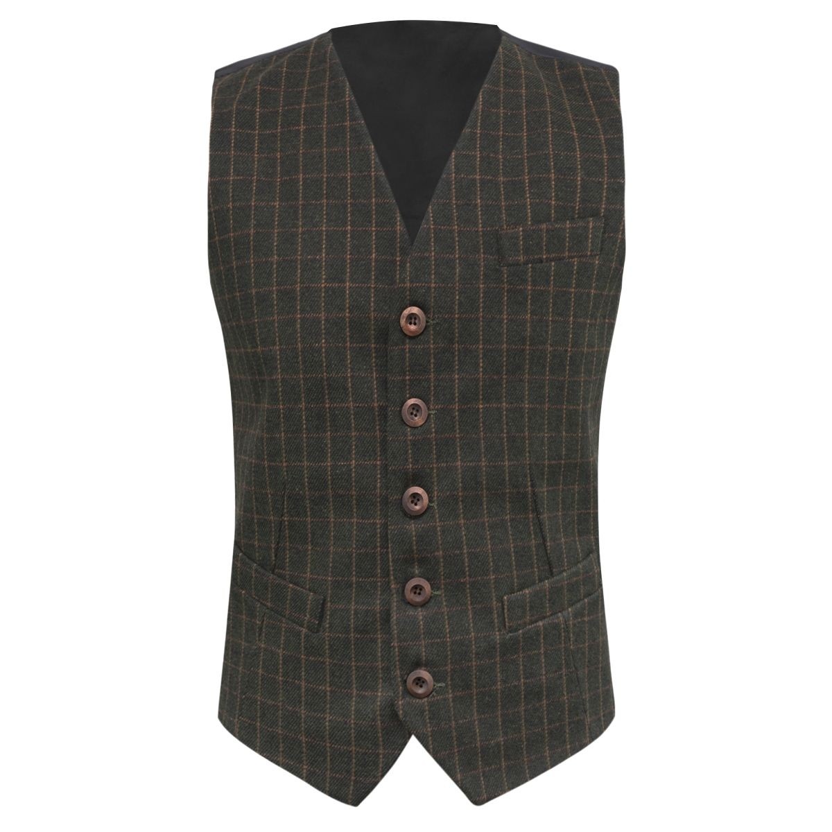 Luxury Leaf Green Tattersall Check Tweed Waistcoat