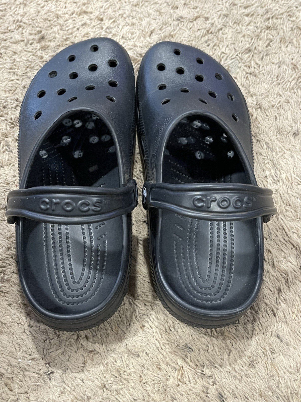 как выглядит Black Crocs Unisex Size M/9 W/11 Clogs Roomy Slip On Heel Strap Great Condition фото