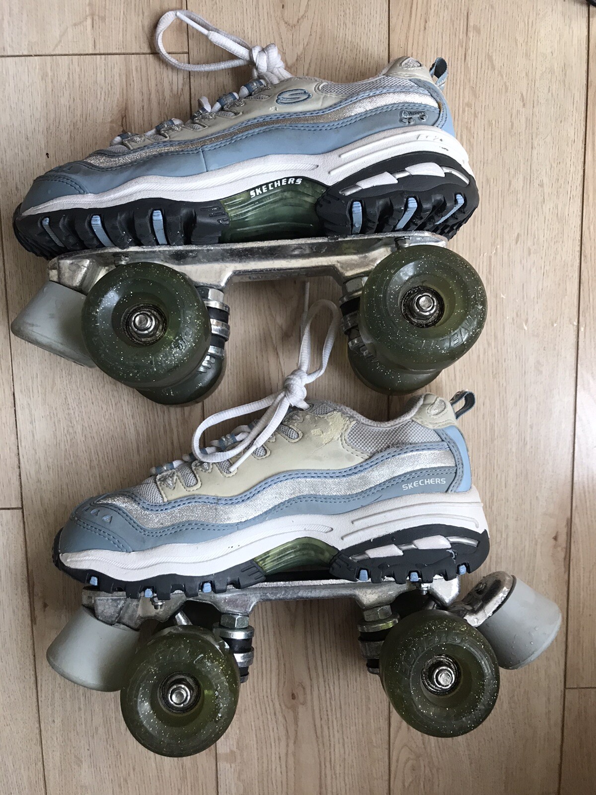 Women s Size 6.5 Sketchers 4 Wheeler Roller Skates Glitter Wheels Light Blue
