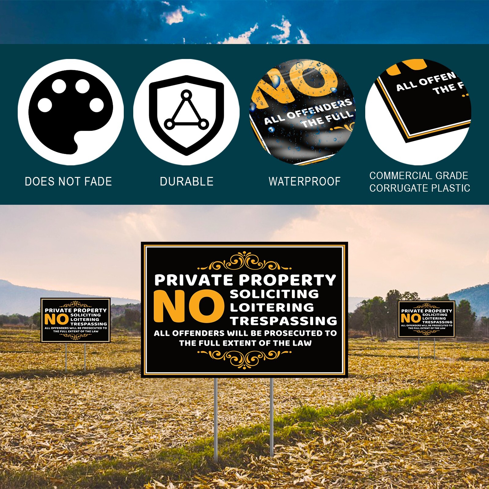 Private Property Sign for Yard, No Soliciting No Loitering No Trespassing Signs