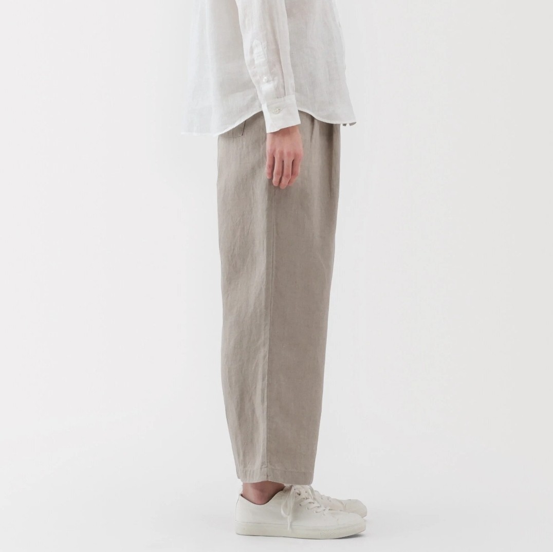 Size XS MUJI Womens 100 Linen Washed Easy Wide Pants Natural linen color
