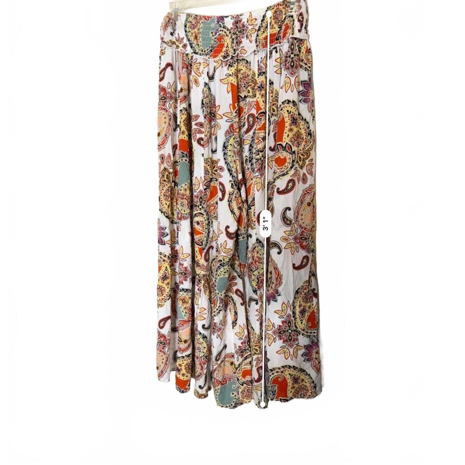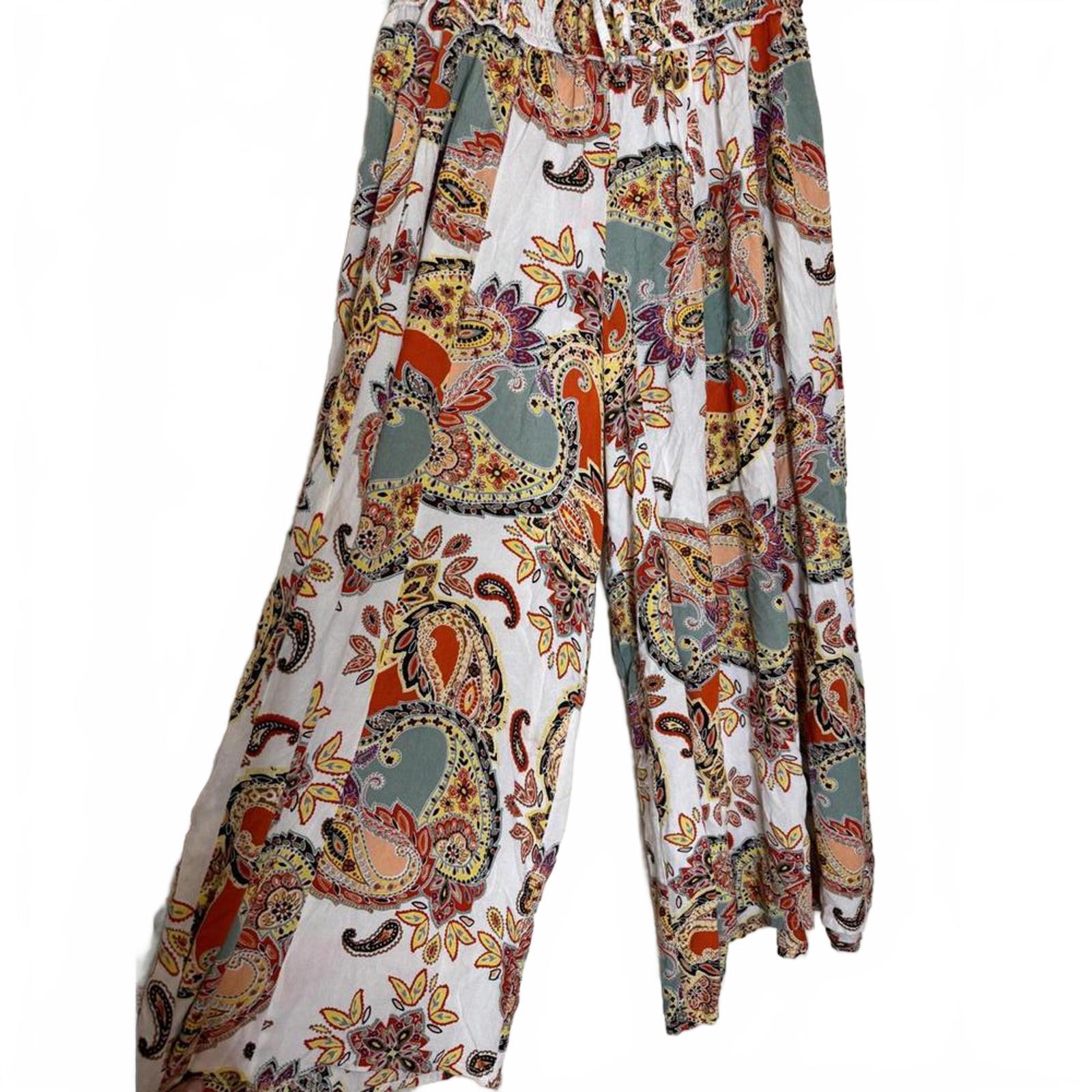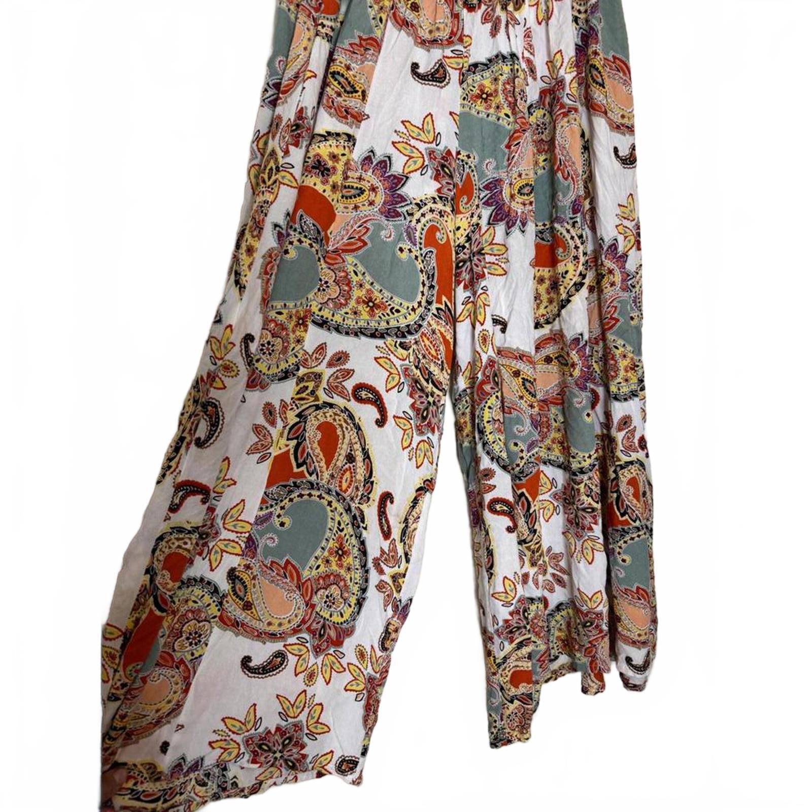 True Destinations Paisley Hippie Boho Wide Leg Resort Wear Cover Up Pants Size L