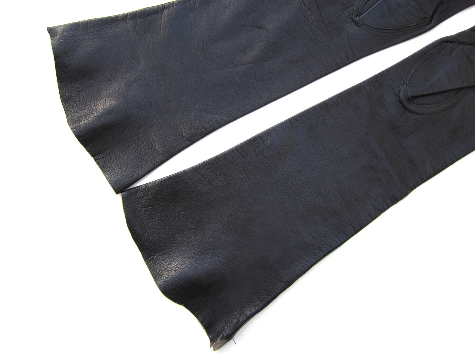 NAVY / BLUE-BLACK ELBOW-LENGTH LAMBSKIN GLOVES ITALY, unlined sz 6-1/2, VTG EUC