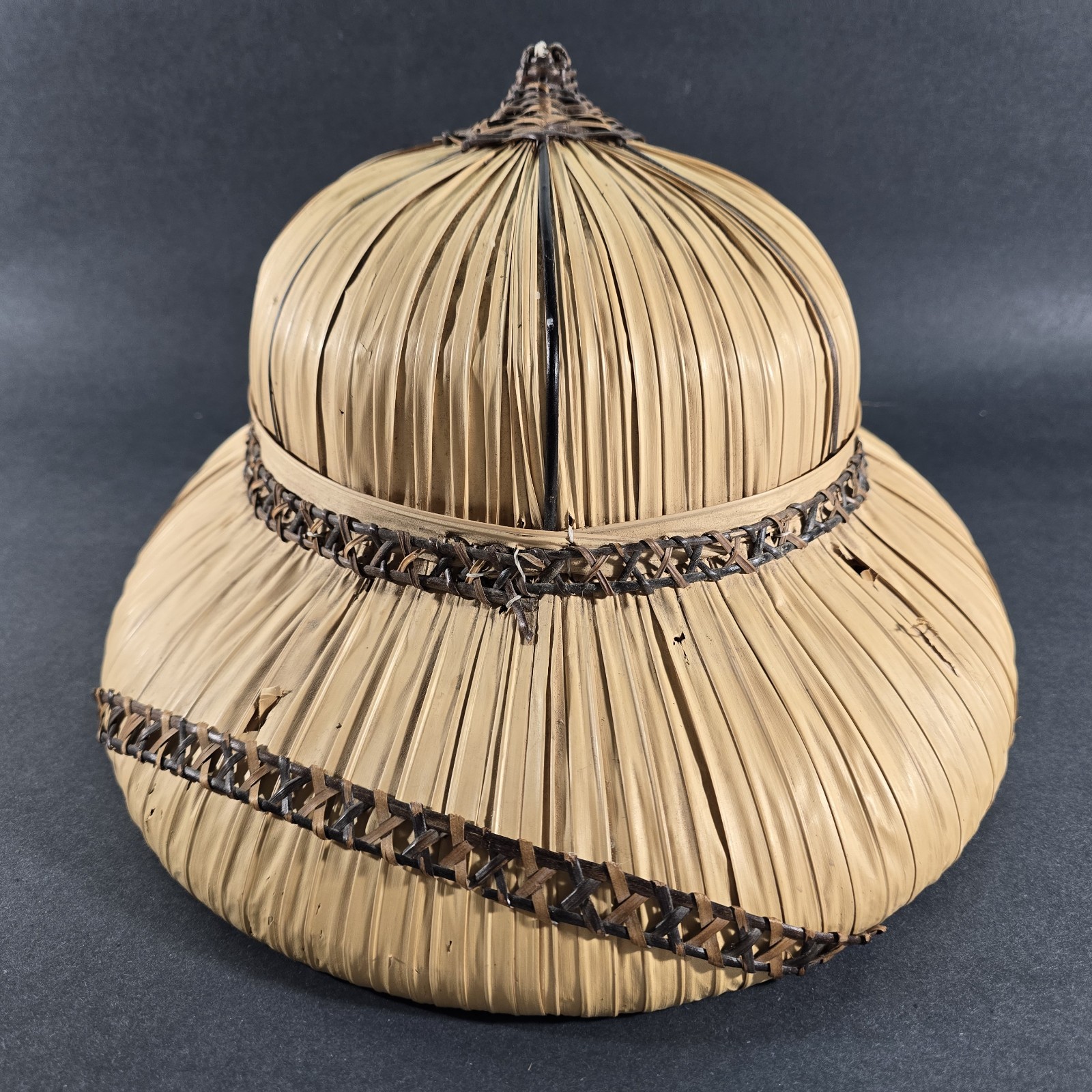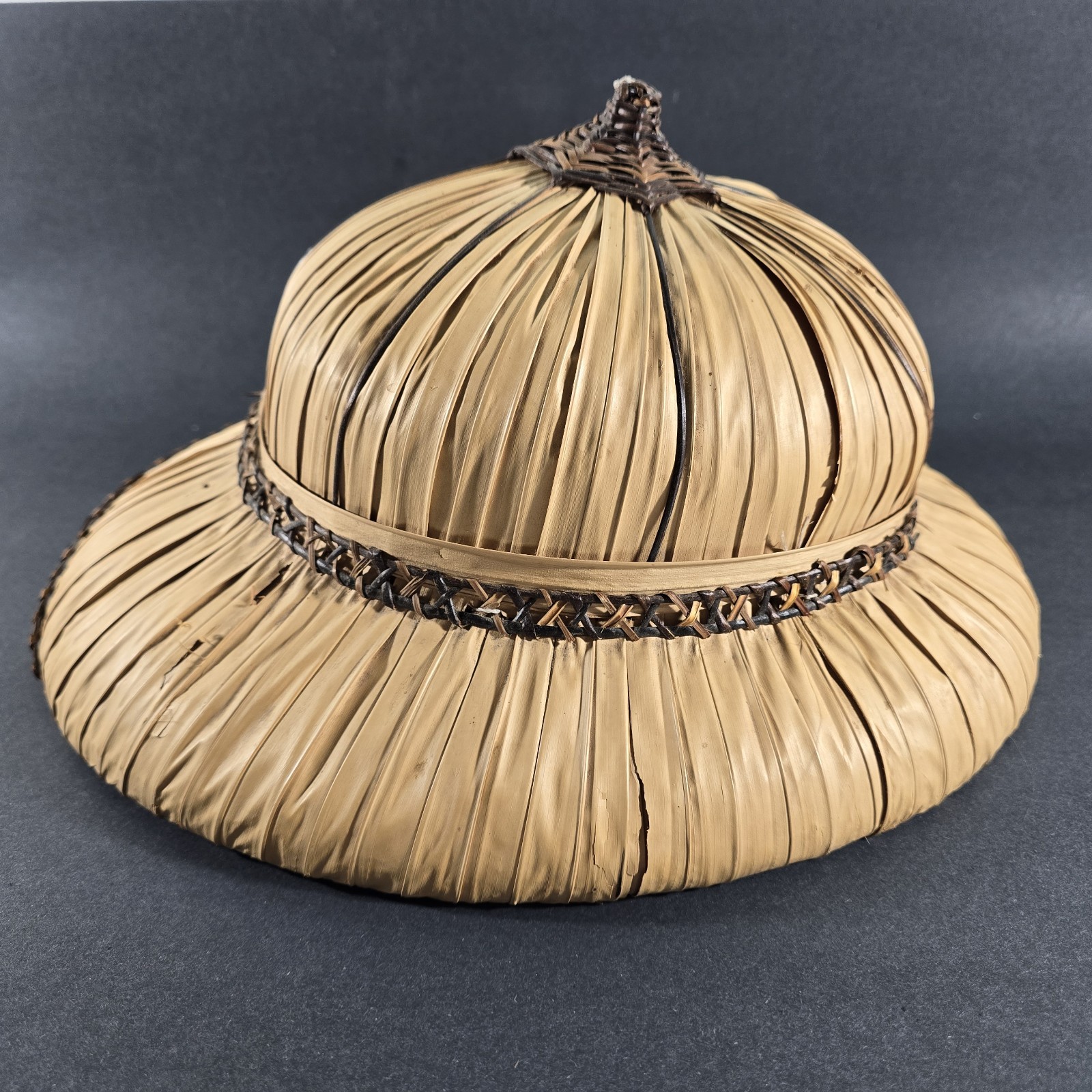 Vintage Bamboo Hat Woven Rattan Straw Antique Pith Helmet Style - Mid-century