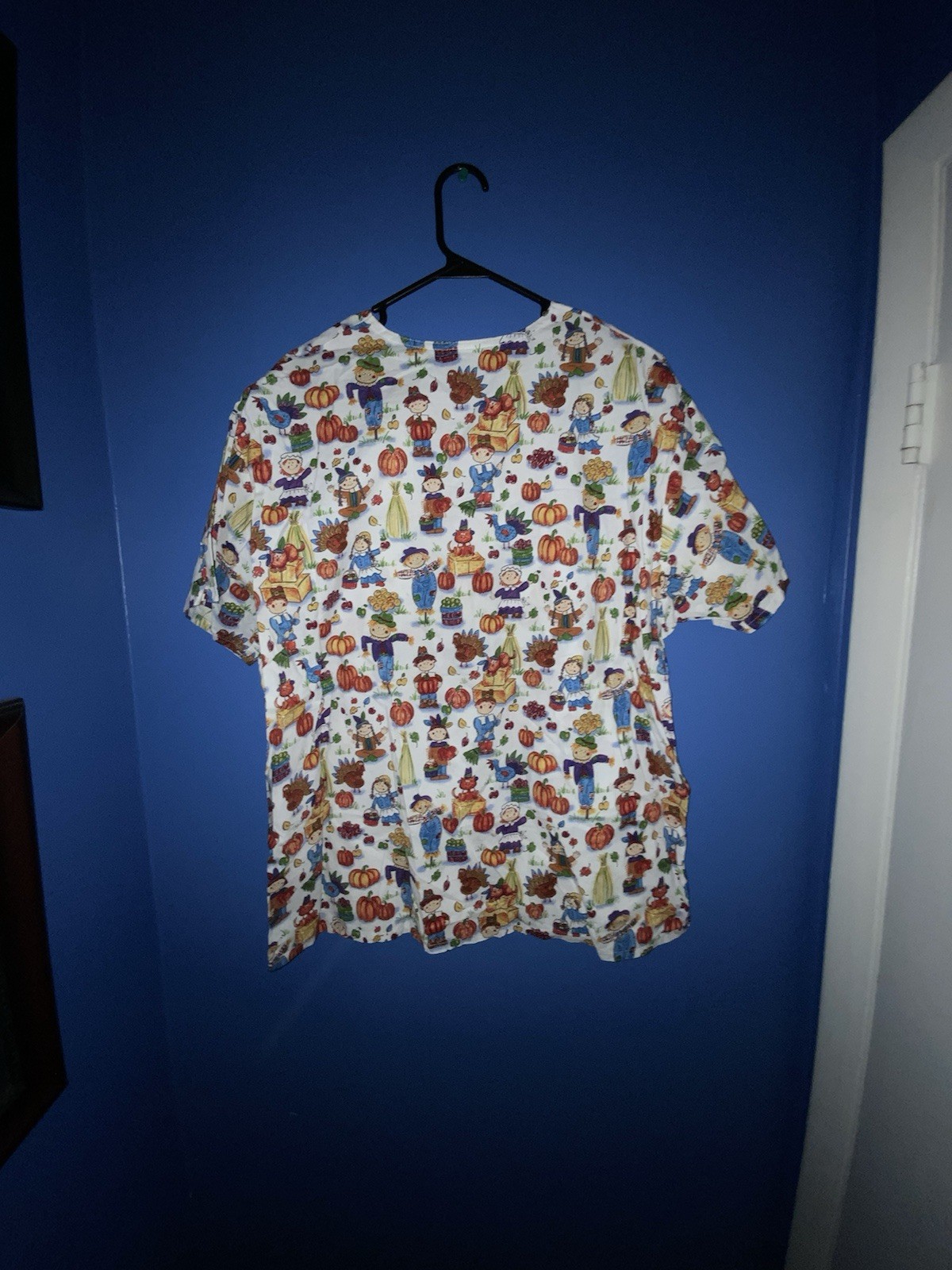 как выглядит Women s V Life Scrub top pumpkins and scarecrows XL Used фото
