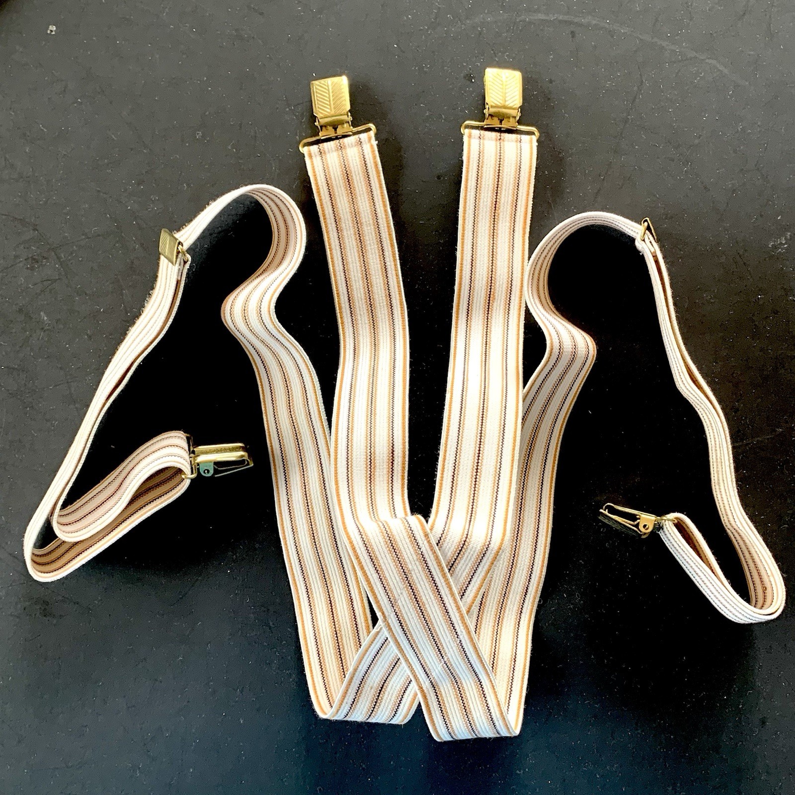 Vtg NEW Men s Suspenders 40 Elastic and Gold Tone BRENT Montgomery Ward READ
