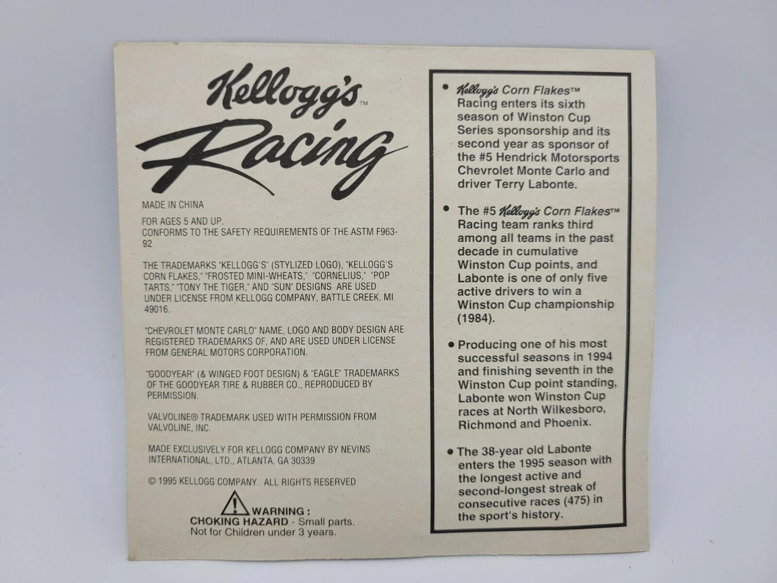 как выглядит 1995 NASCAR 5 Terry Labonte Promotional Kellogg