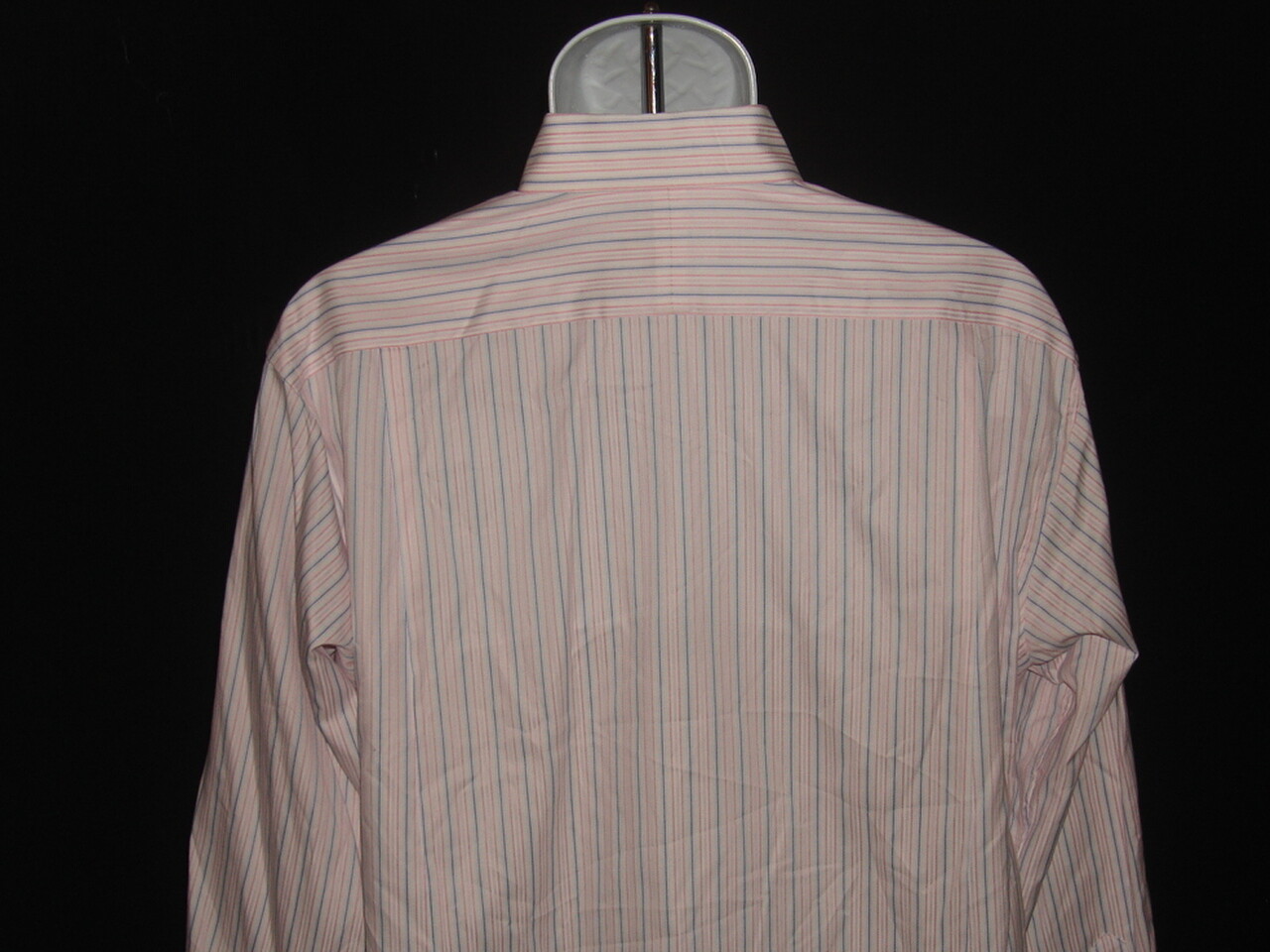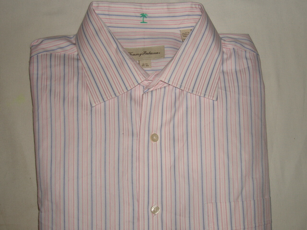 как выглядит TOMMY BAHAMA WHITE/PINK/BLUE STRIPED COTTON L/S DRESS SHIRT SZ. 16.5-34/35 фото