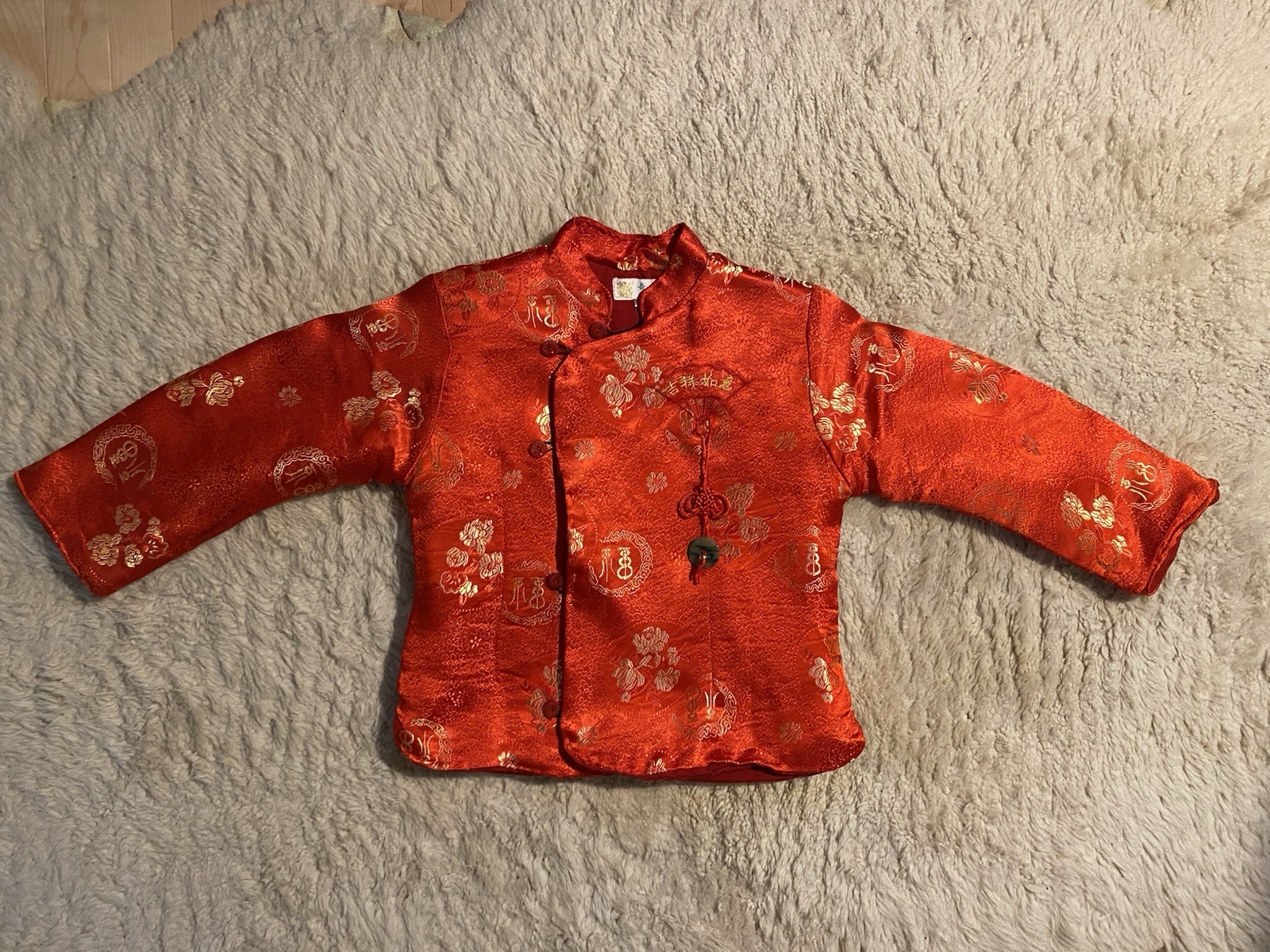 как выглядит VTG Child small Red silk Asian quilted Jacket Chinese Cheongsam robe фото