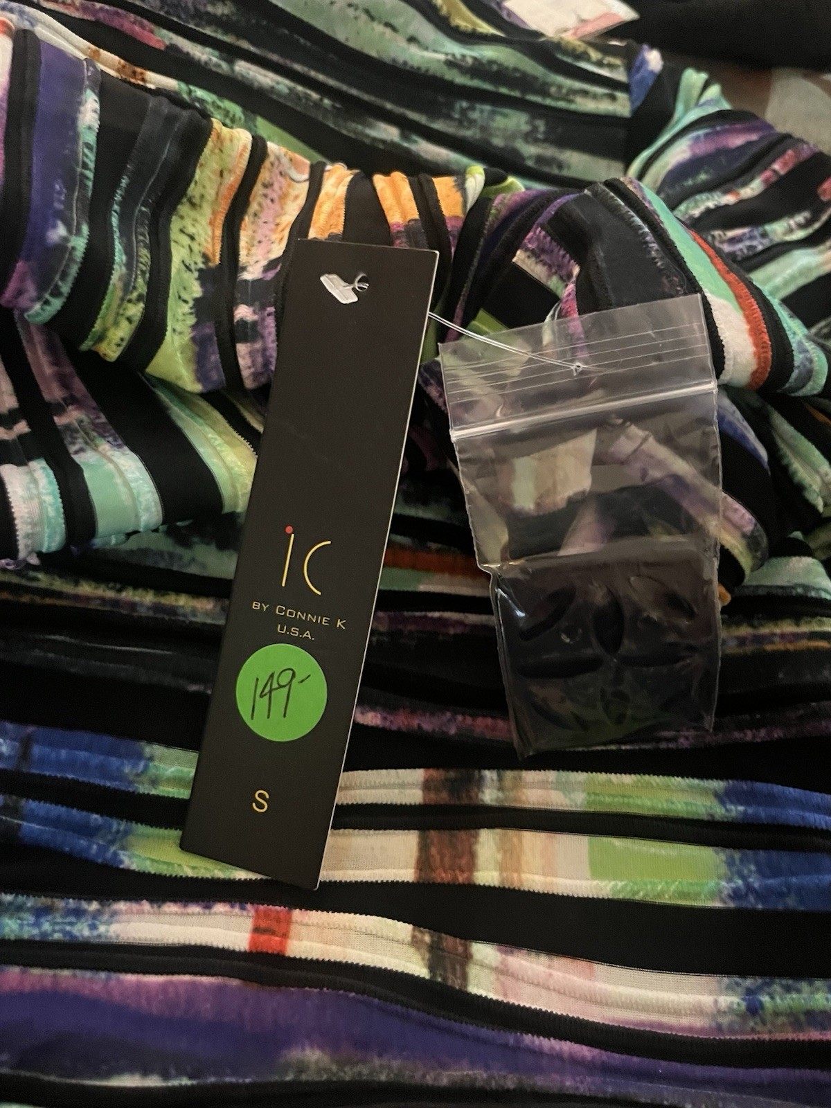 как выглядит NWT IC by Connie K Multicolor Stripe Vibrant One-Button Asymmetric Hem Jacket S фото