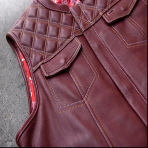 Hunt Club Style Men's Red Paisley Leather Vest Motorcycle Biker Concealed Carry