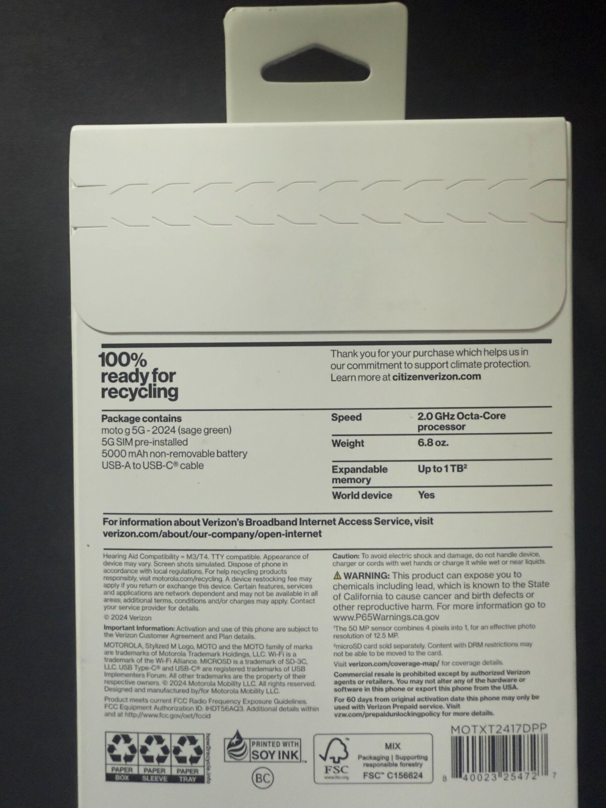 как выглядит Motorola Moto G 5G 2024 XT2417 6.5" 128GB Sage Green VERIZON LOCKED - NEW SEALED фото