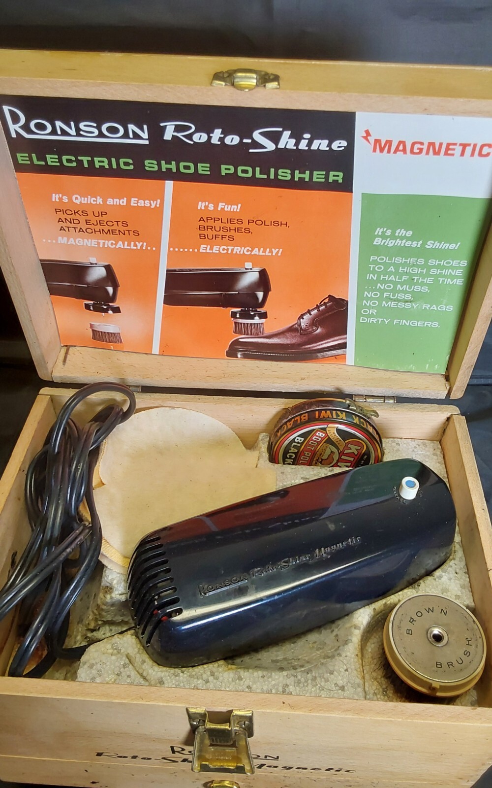как выглядит Ronson Roto Shine Magnetic Electric Shoe Polish Set Shoe Brush-Runs Nice фото