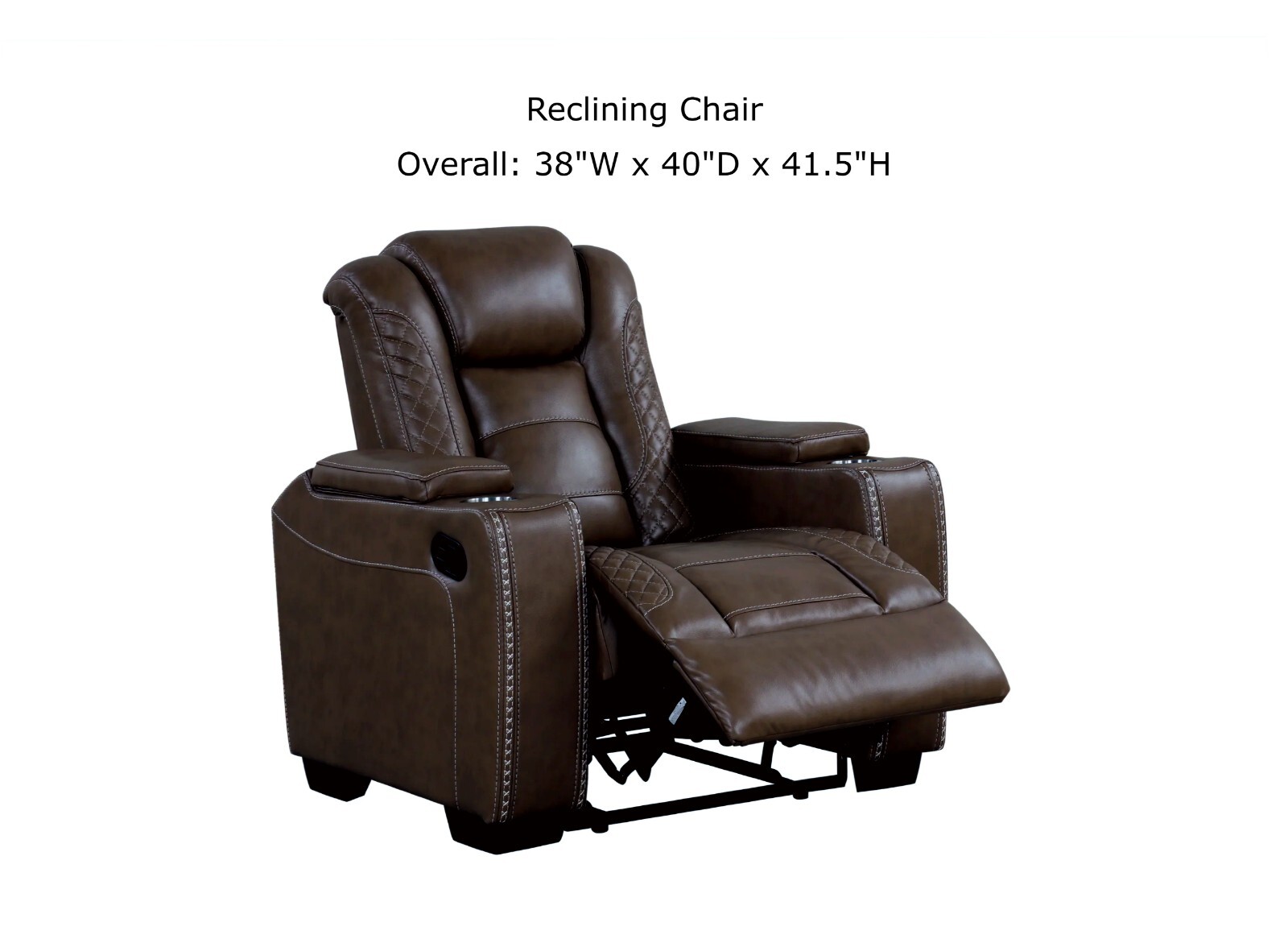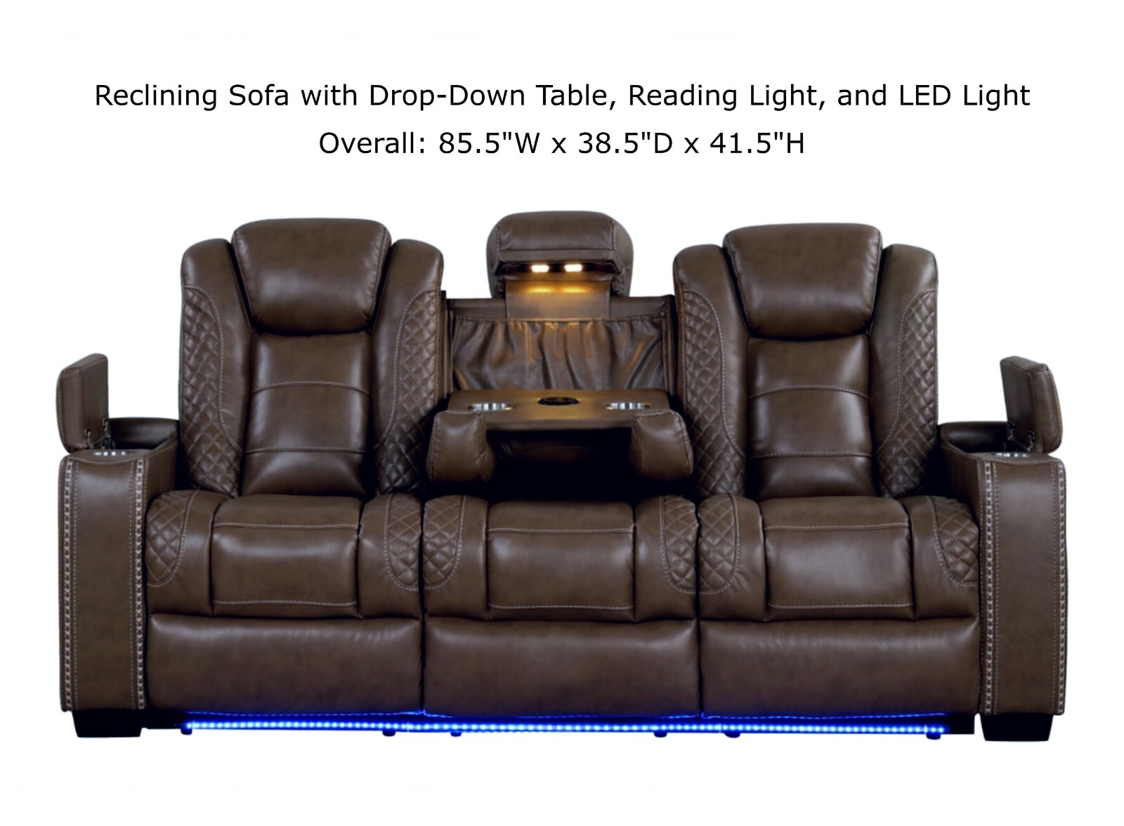 SALE LED 3PC Sofa Recliner Set Brown Leather Bluetooth Speaker Wireless Charge