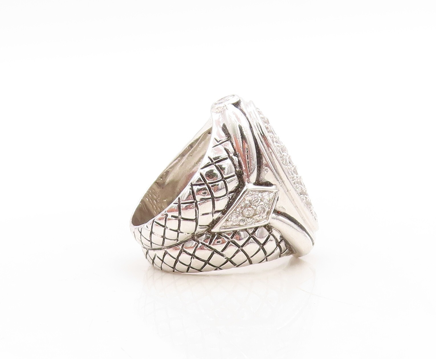 925 Sterling Silver Vintage Ring Net Design Etched Oval CZ Inlay Sz 6 RG31320