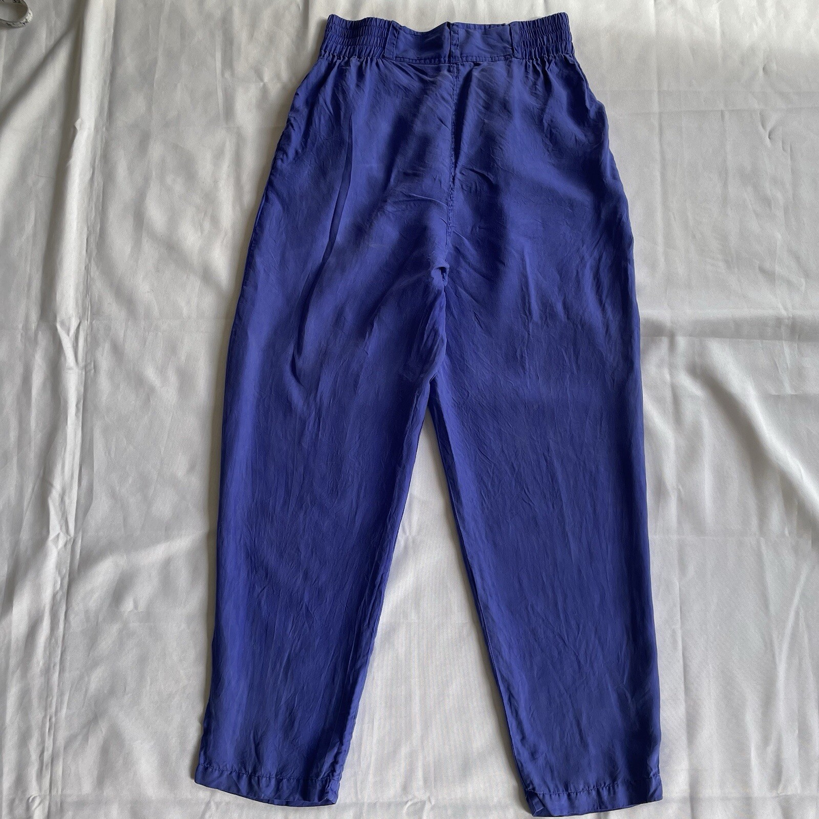 VTG paperbag elastic waist tapered leg women trousers pants 100 silk Sz Medium
