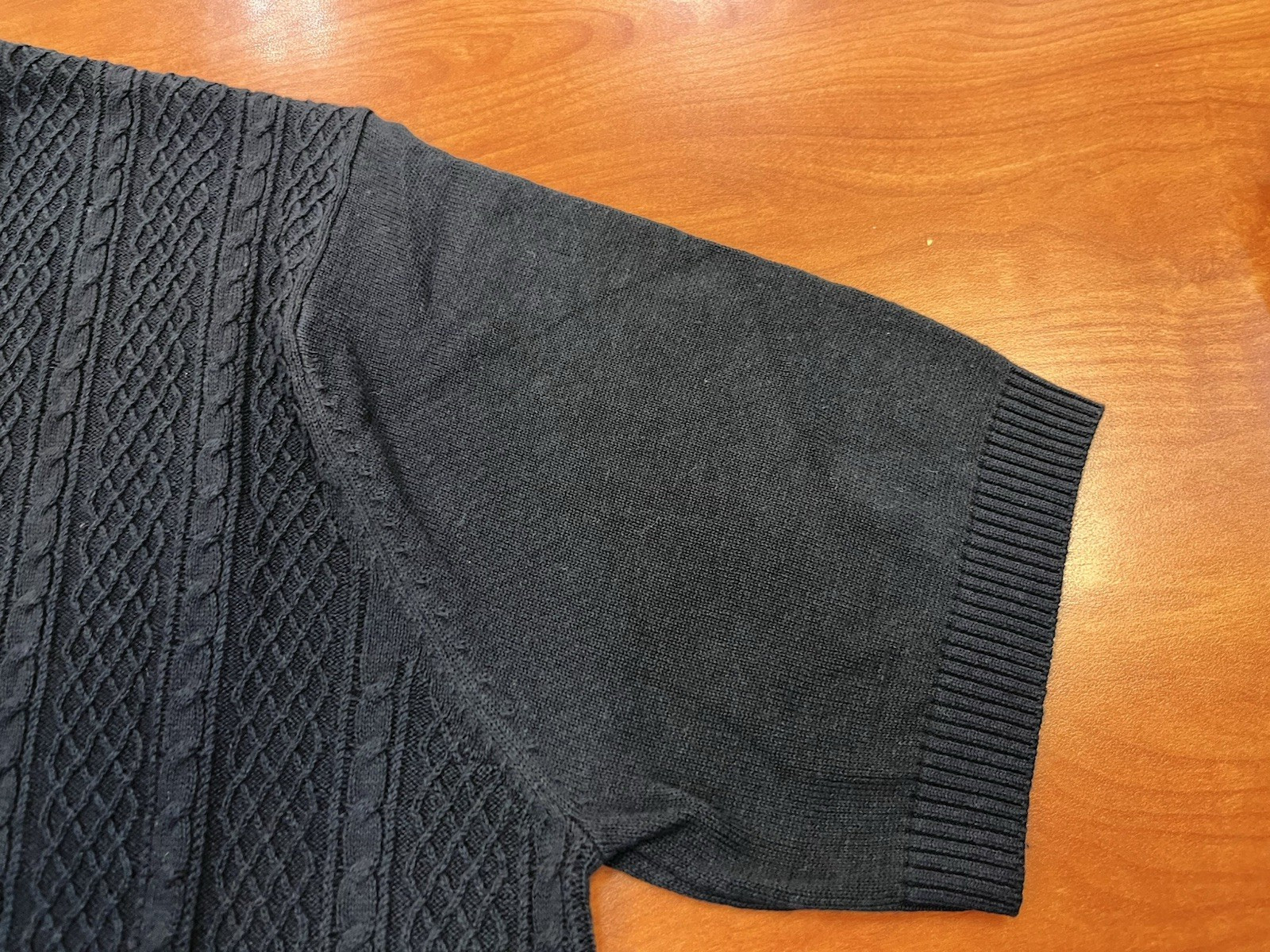как выглядит SALE LaVane Mens Solid Cable Light Weight Short Sleeve Sweater M-3X-BLACK фото