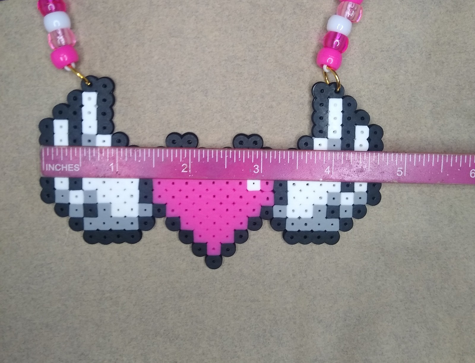 как выглядит Pink Heart Perler Bead Kandi Necklace-FUSE BEAD-EDC-RAVE-FESTIVAL-PLUR-EDM фото