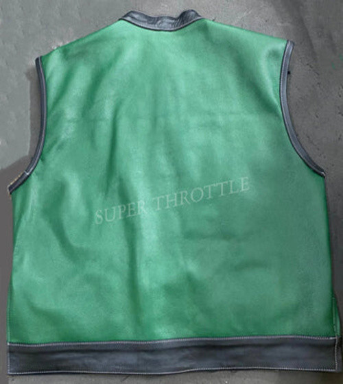 Hunt Club Style Diamond Stitched Green Motorcycle Concealed Carry Leather Vest
