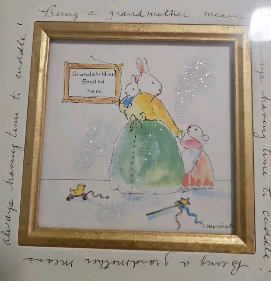 Framed Nursery Art C Marshall Bunny Watercolor Grandmother Bunny Grandchildren