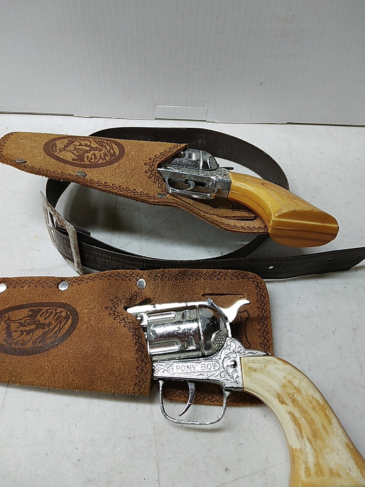 2 Vintage PONY BOY CAP GUNS W/ HOLSTER AND BELT