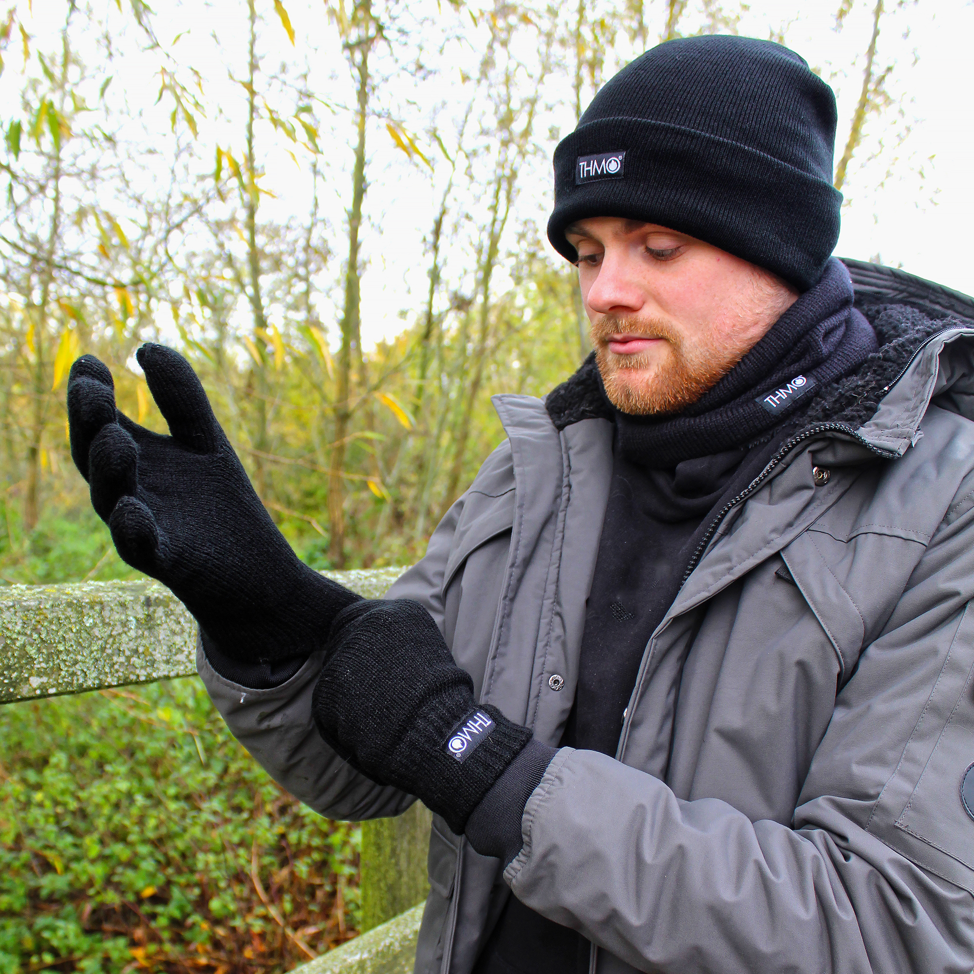 Mens Thinsulate Hat and Gloves Set THMO Acrylic Knitted Winter Set