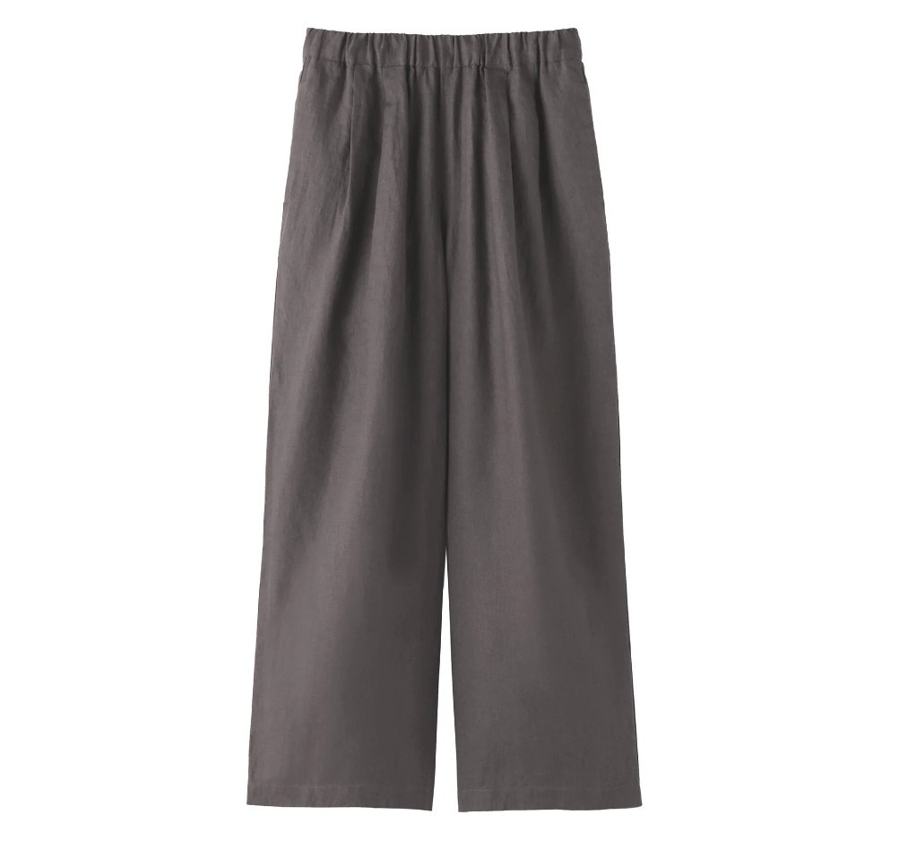 Size Small MUJI Womens 100 Linen Washed Easy Wide Pants charcoal gray