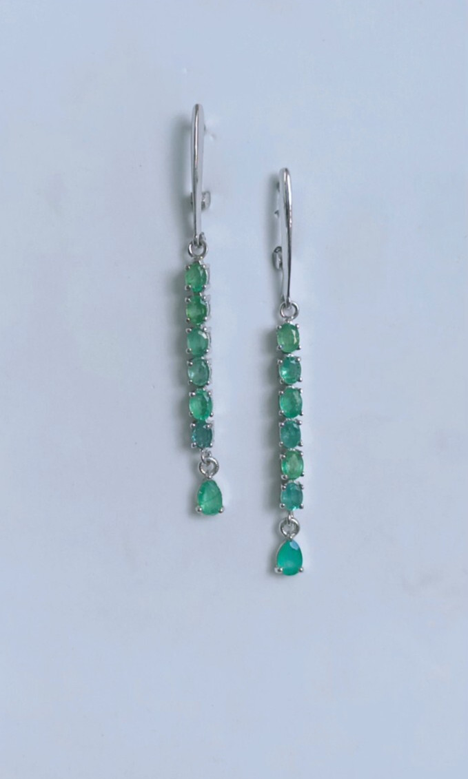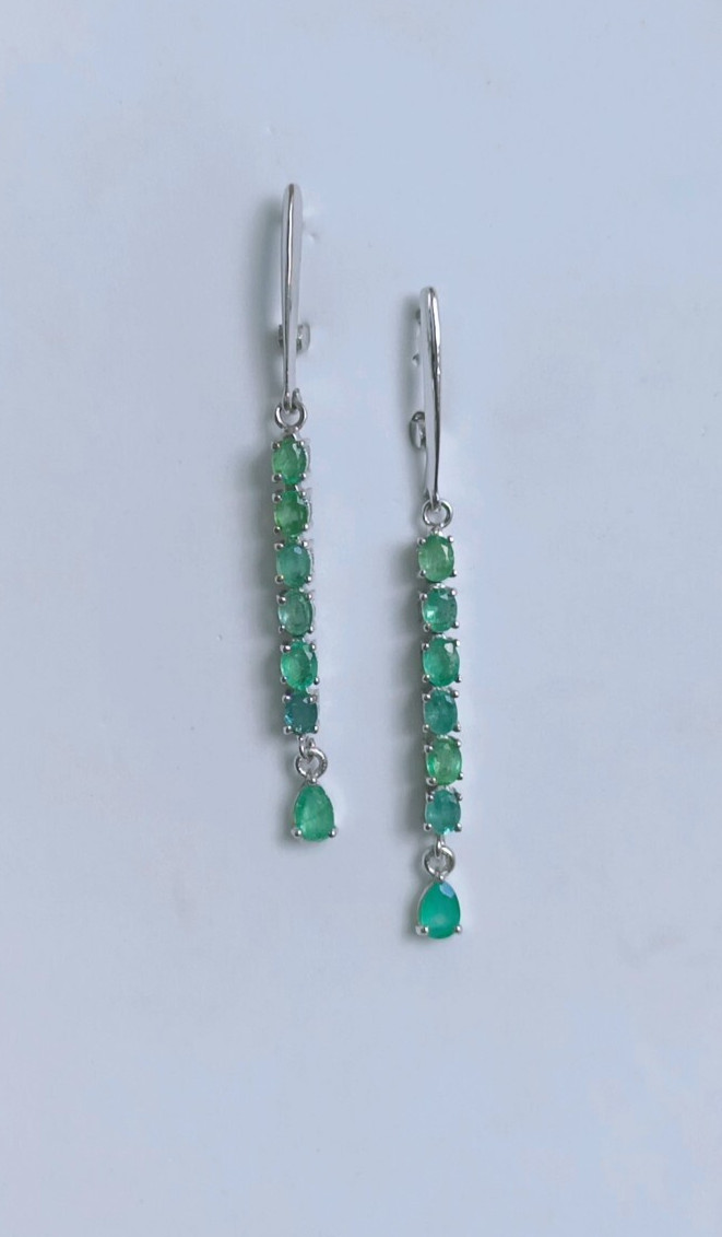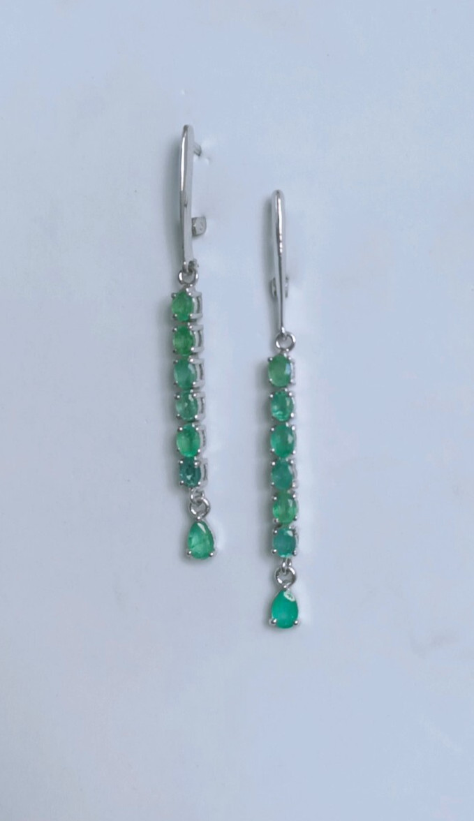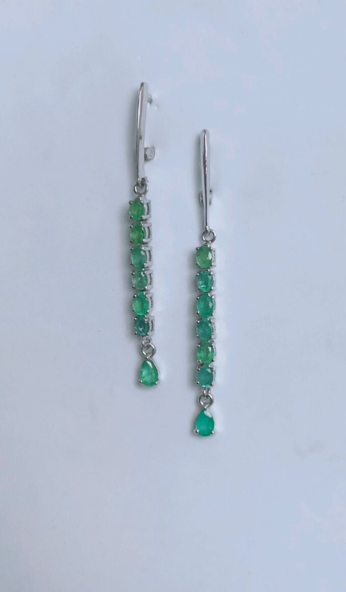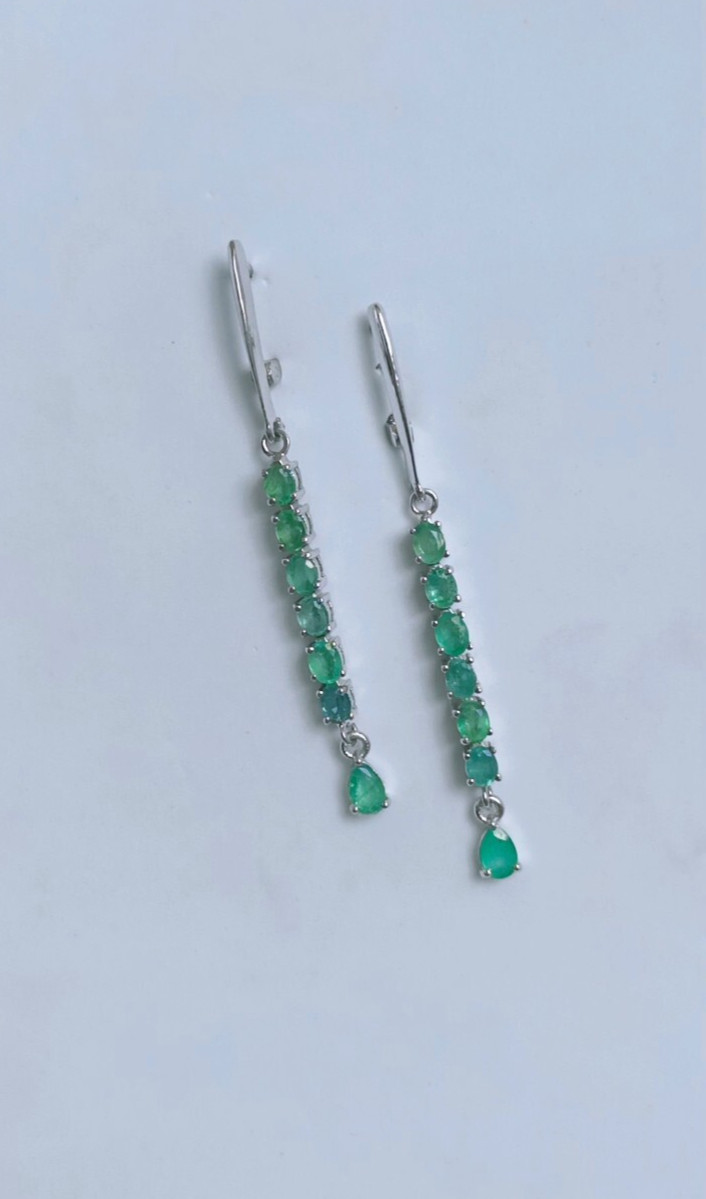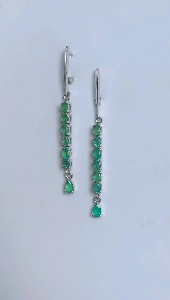 как выглядит Natural Emerald Dangle Drop Long Earrings 925 Sterling Silver Handmade Jewelry фото