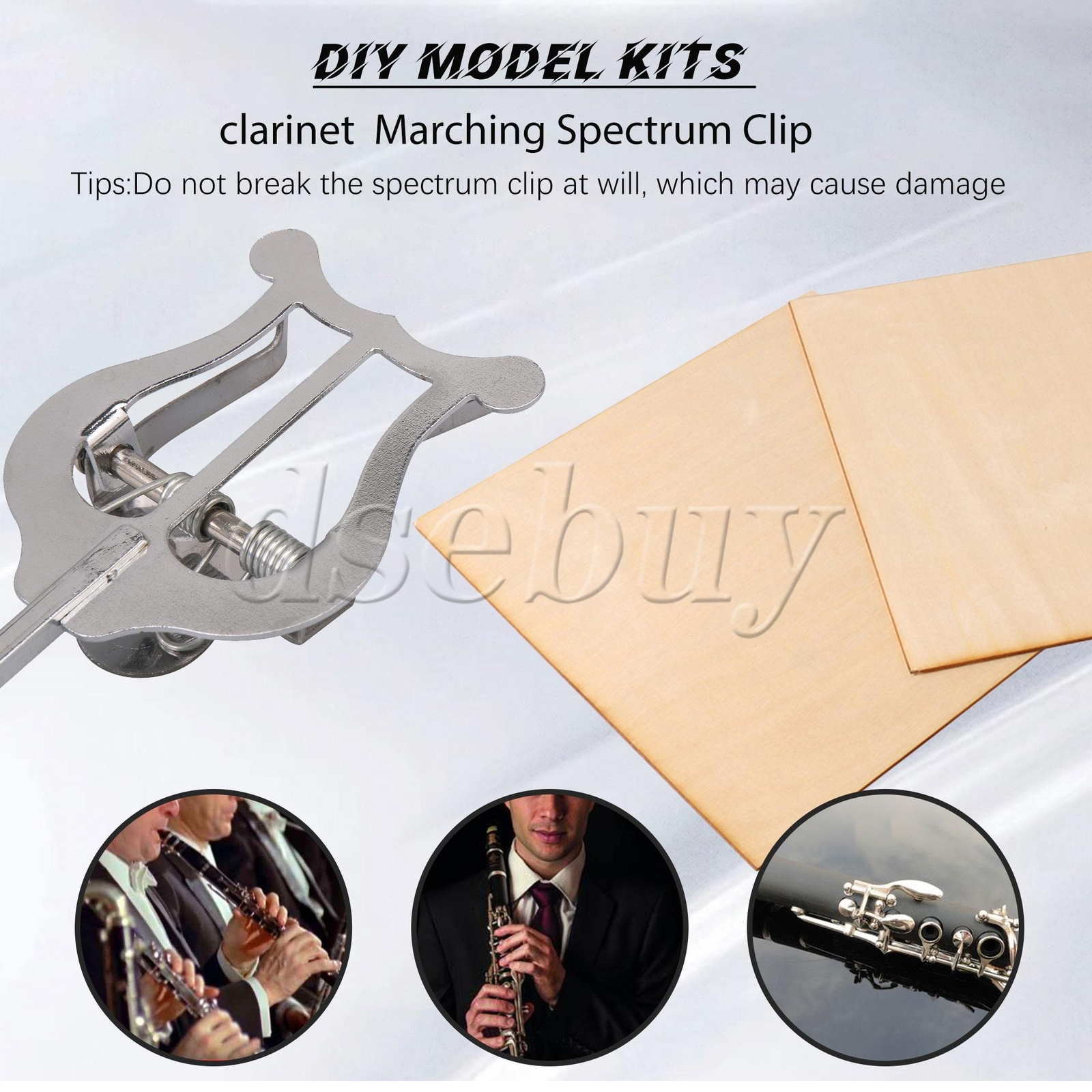 как выглядит 6 Pieces Clarinet Marching Lyre Clamp-On Music Stand w/ Wood Cork Sheet 1.5mm фото