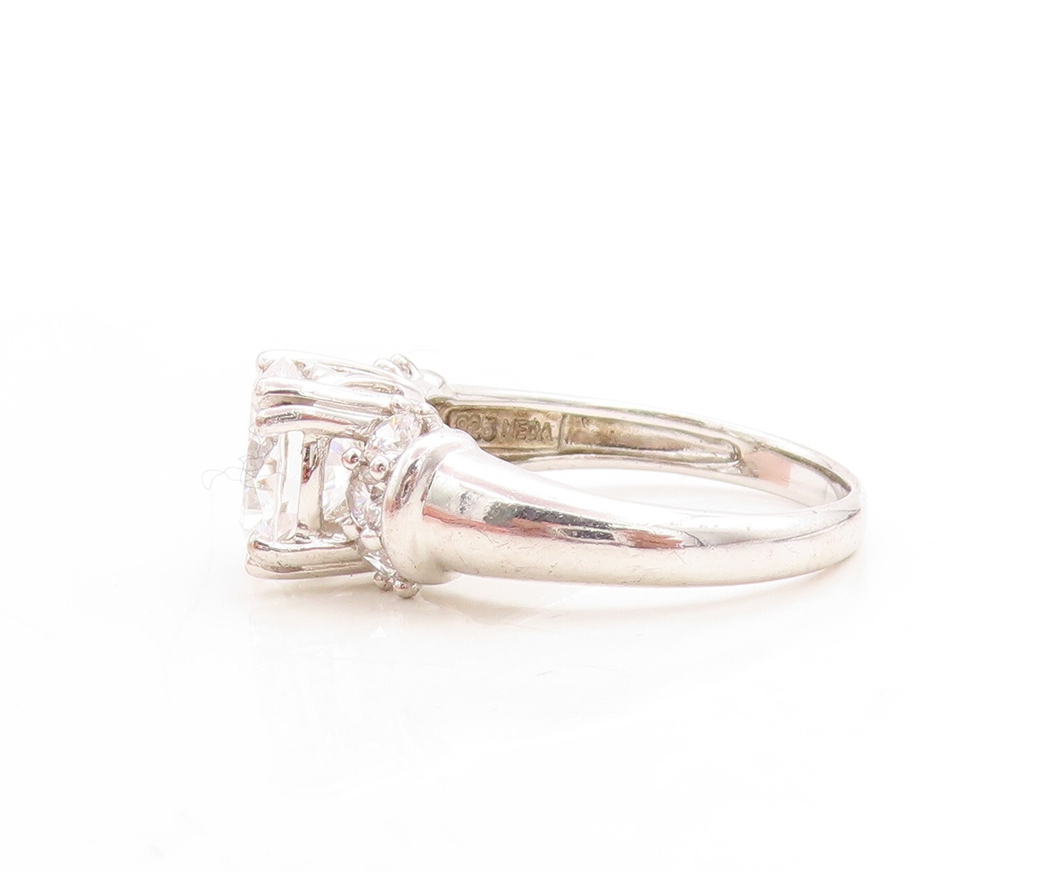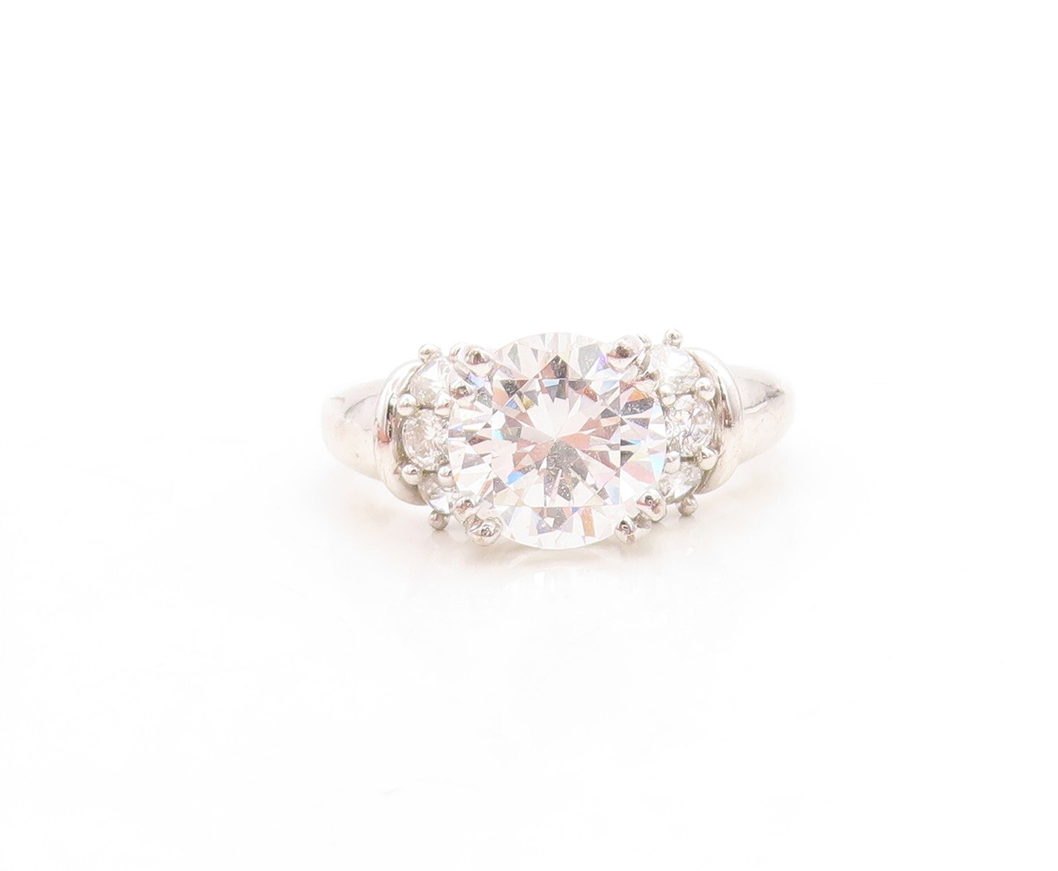 925 Sterling Silver Vintage Ring Round Cut CZ Inlay Sz 7 RG31487