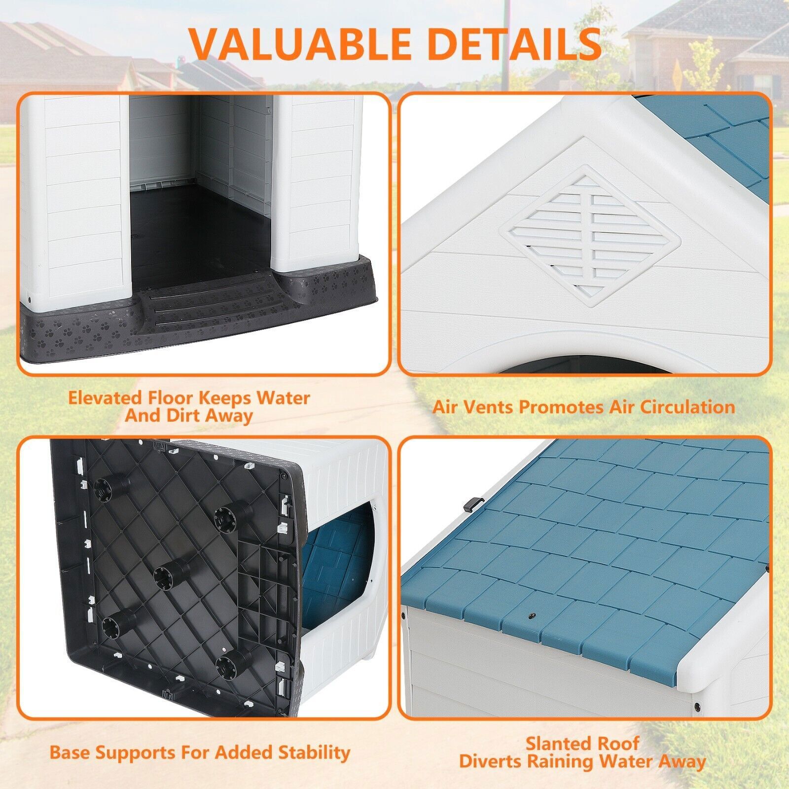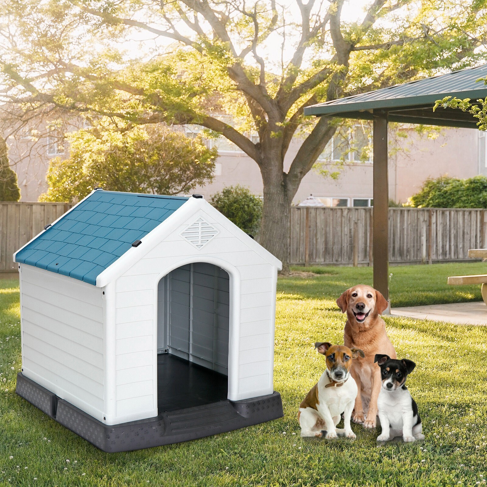 32Inch Dog House Outdoor Durable Ventilate Waterproof Pet Plastic Dog House Blue